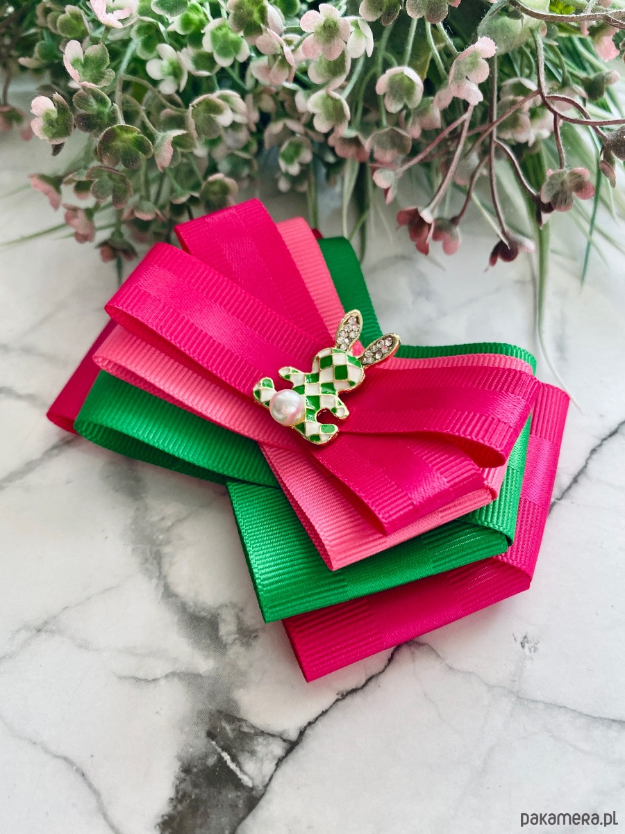 Na środku cudowna ozdoba biżuteryjna malowany w romby zajączek z perłą.