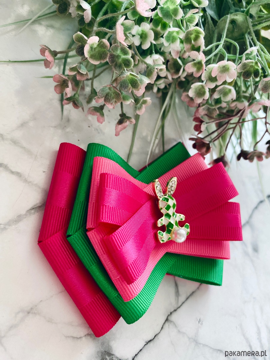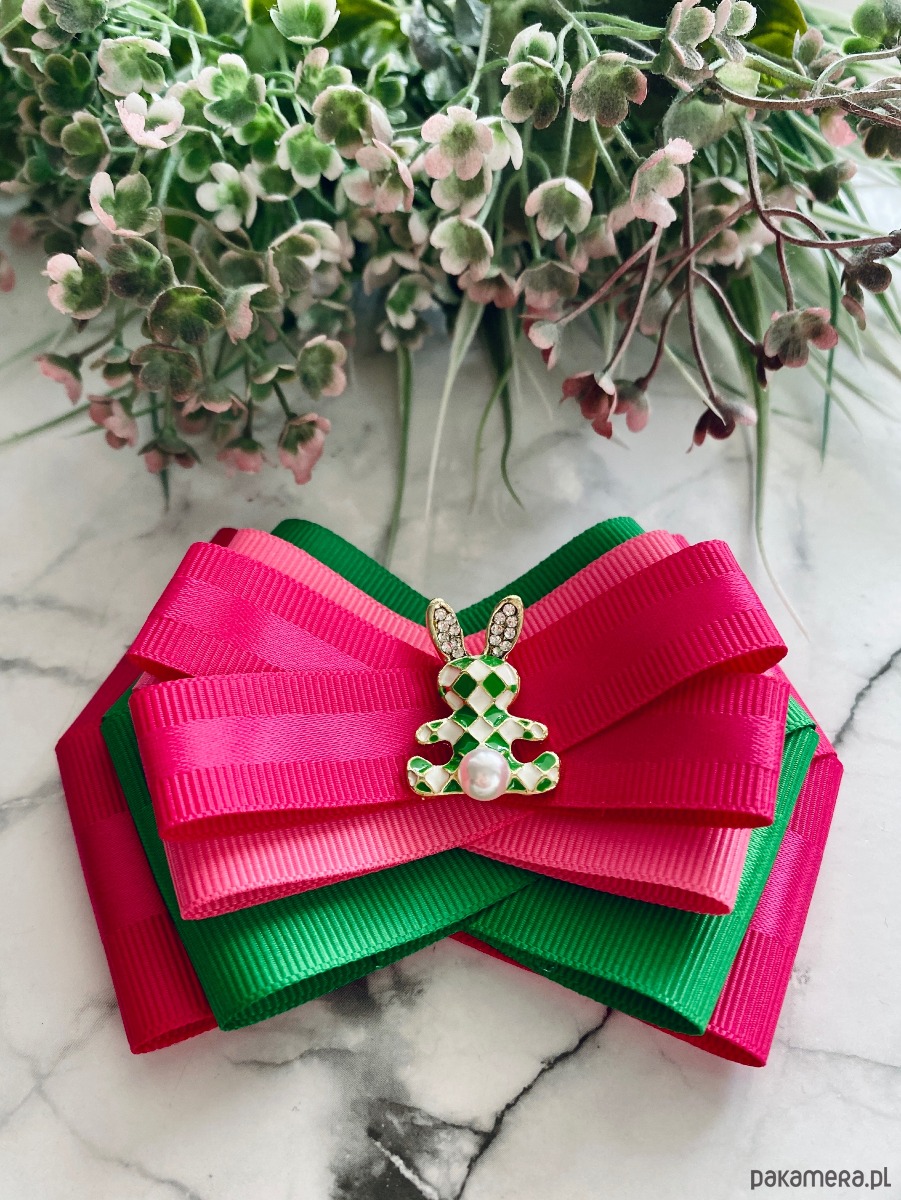 Na środku cudowna ozdoba biżuteryjna malowany w romby zajączek z perłą.