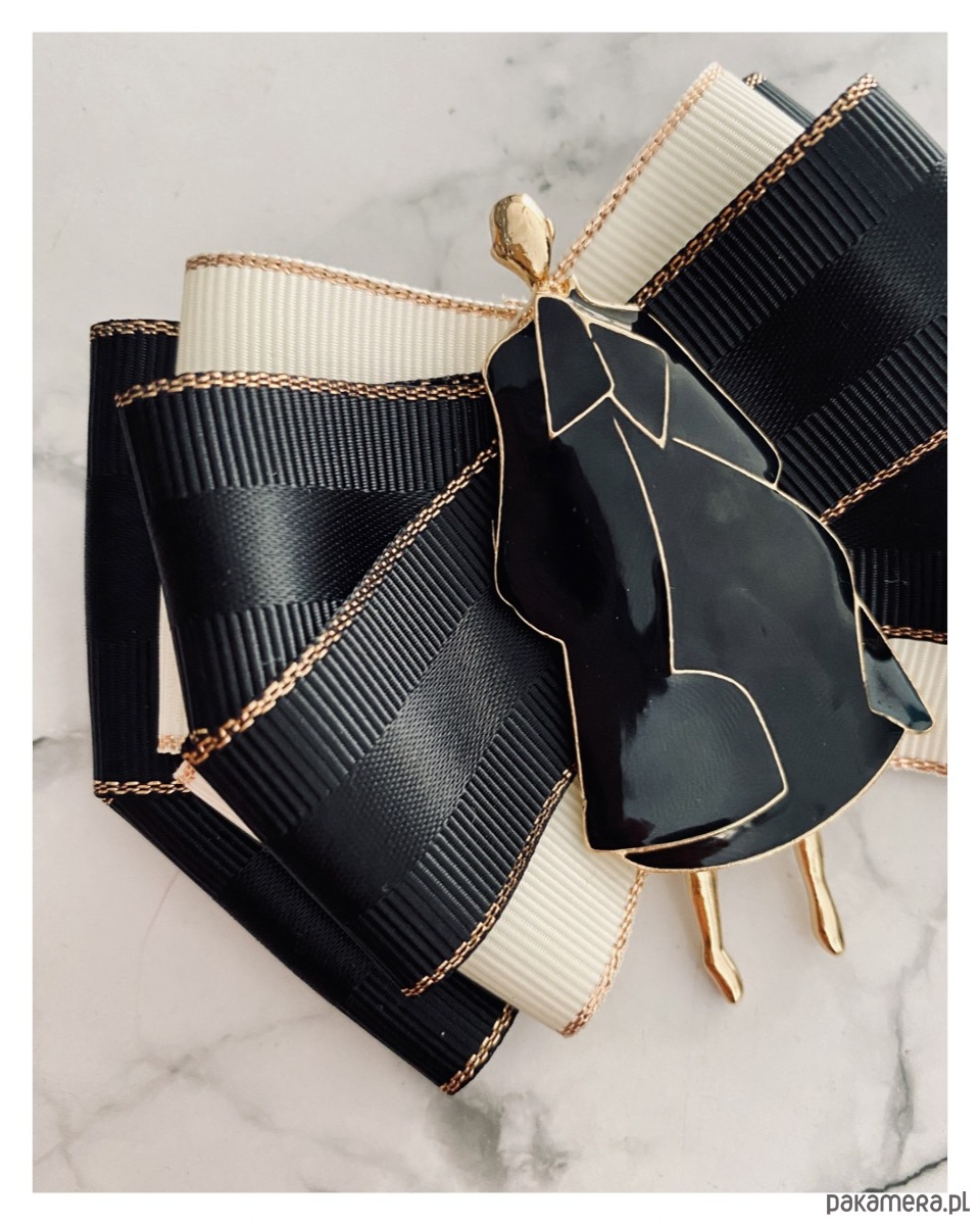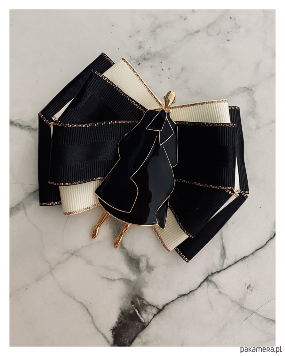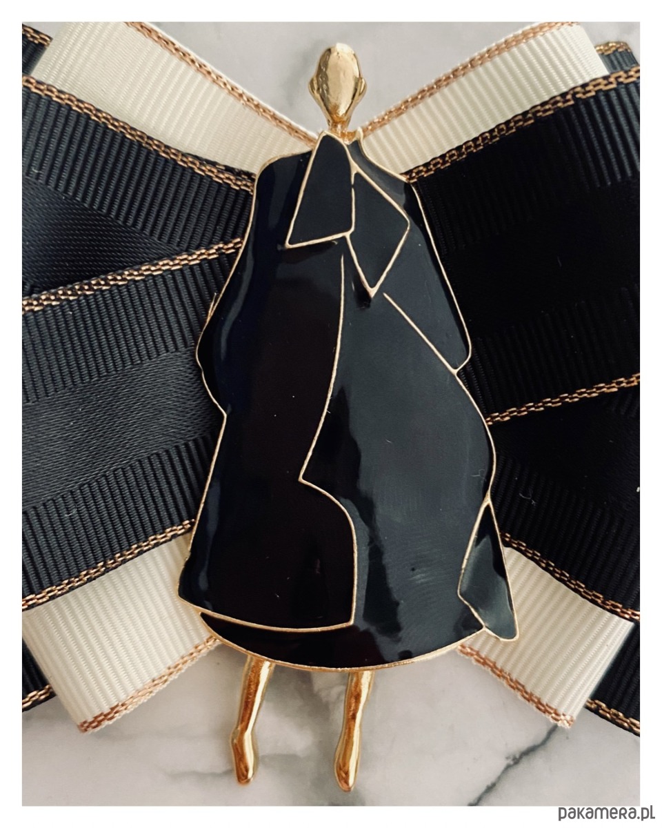 Broszka wykonana z wysokiej jakości taśm i dodatków.