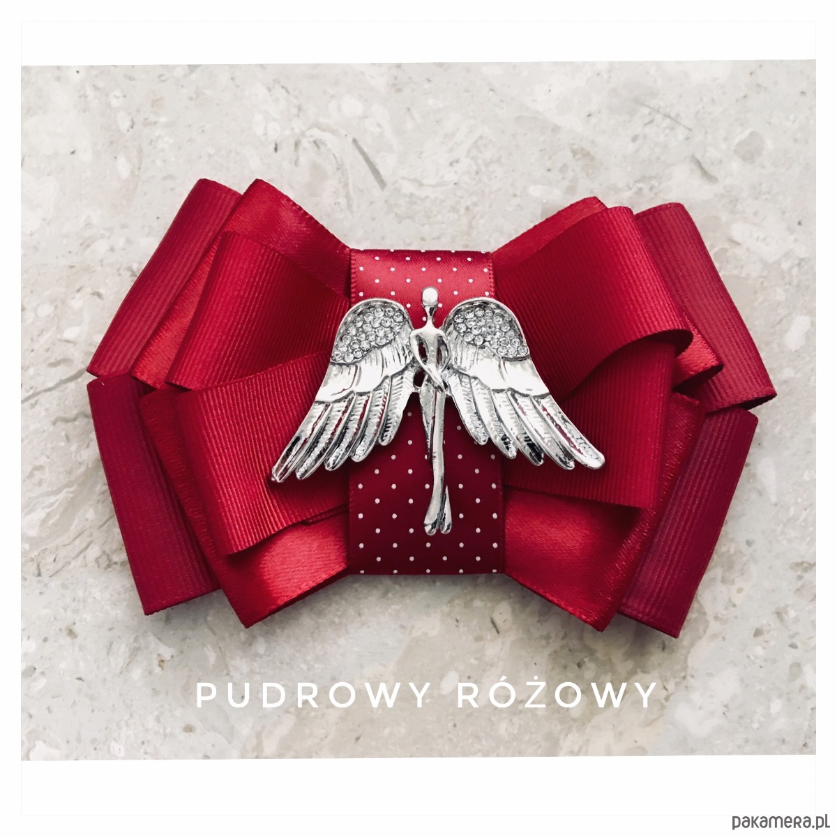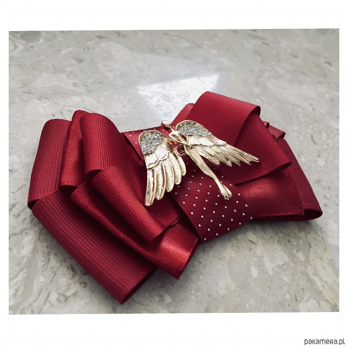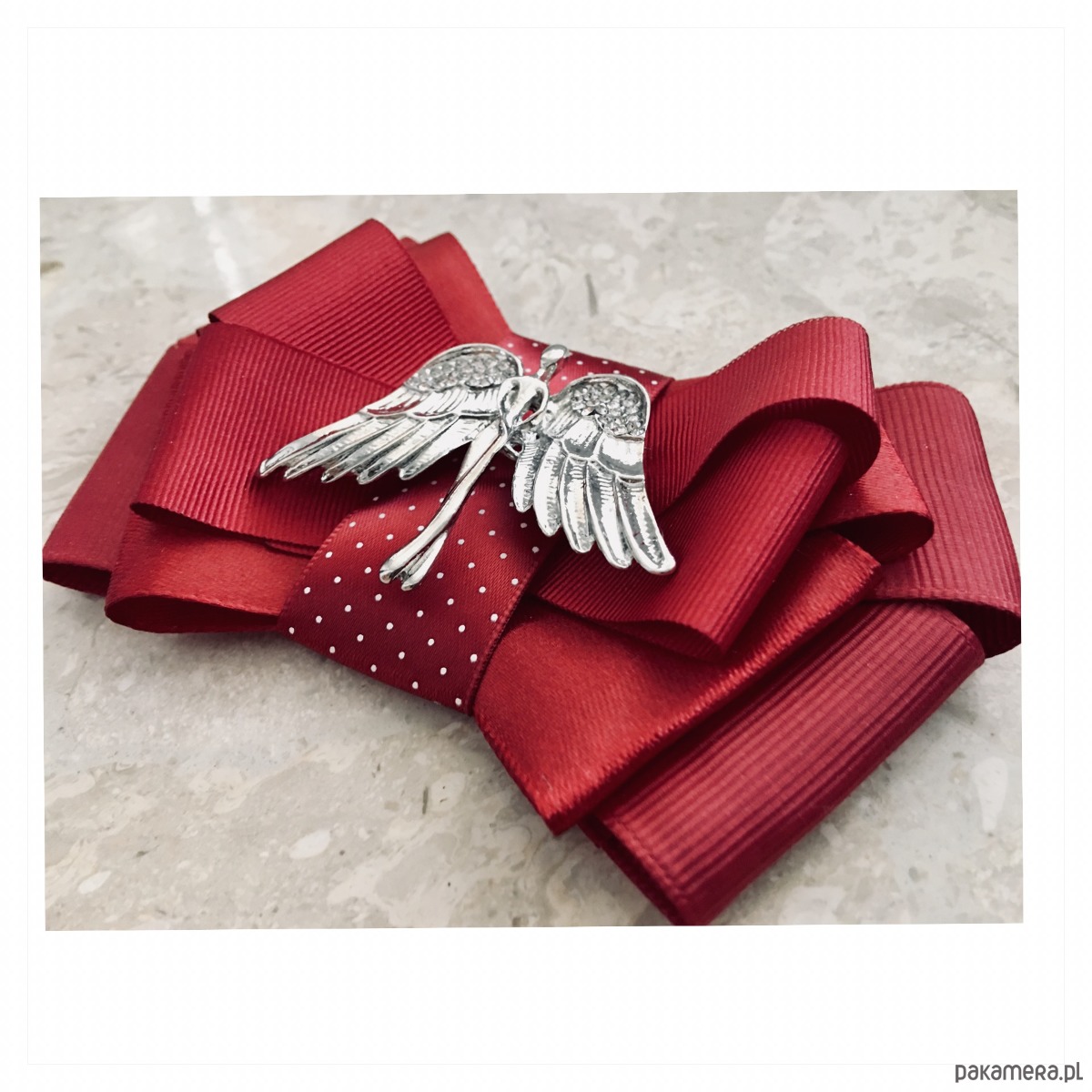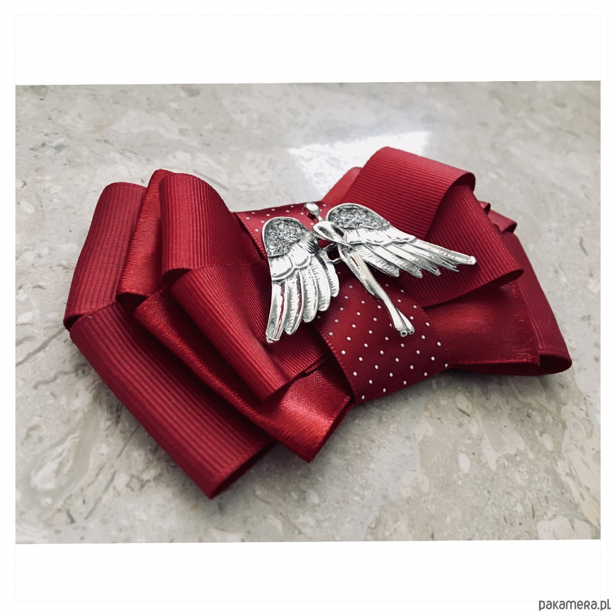 Broszka wykonana z wysokiej jakości taśm i dodatków. Brosza w najmodniejszych kolorach tego sezonu. Na środku naszyta dekoracyjna ozdoba biżuteryjna Anioł z kryształkami w kolorze delikatnego złota lub srebra. Będzie idealnie pasować zarówno do koszul, bluzek, swetrów, sukienek, żakietów oraz do płaszczy, kurtek, szali i chust. Idealna do każdej stylizacji, zarówno do sportowej jak również do eleganckich stylizacji.