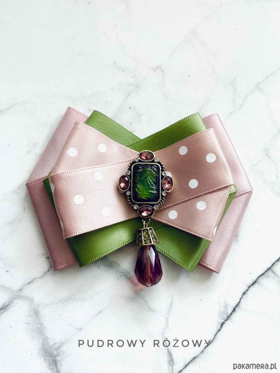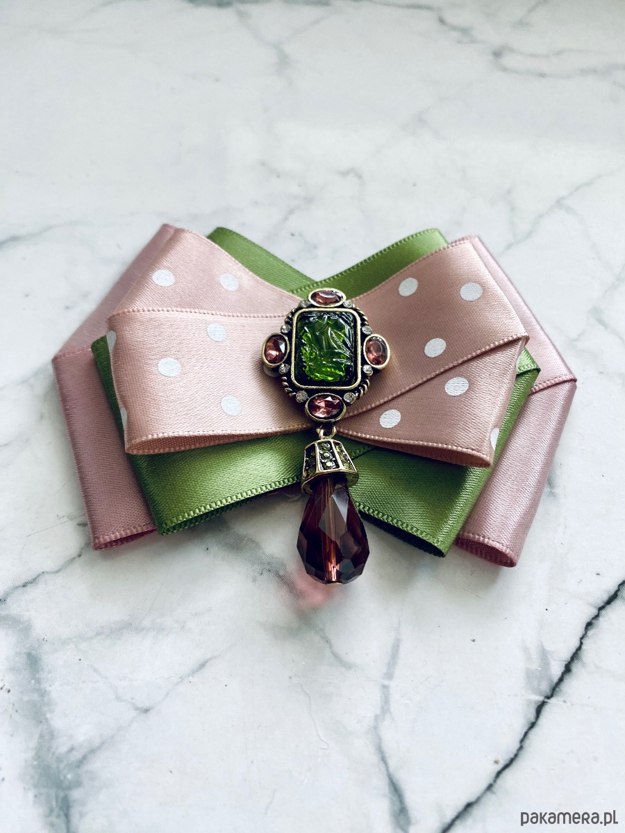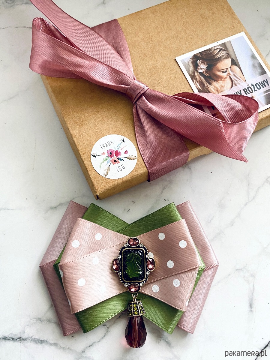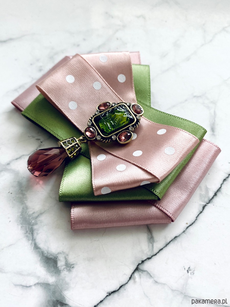 Broszka wykonana z wysokiej jakości taśm i dodatków.