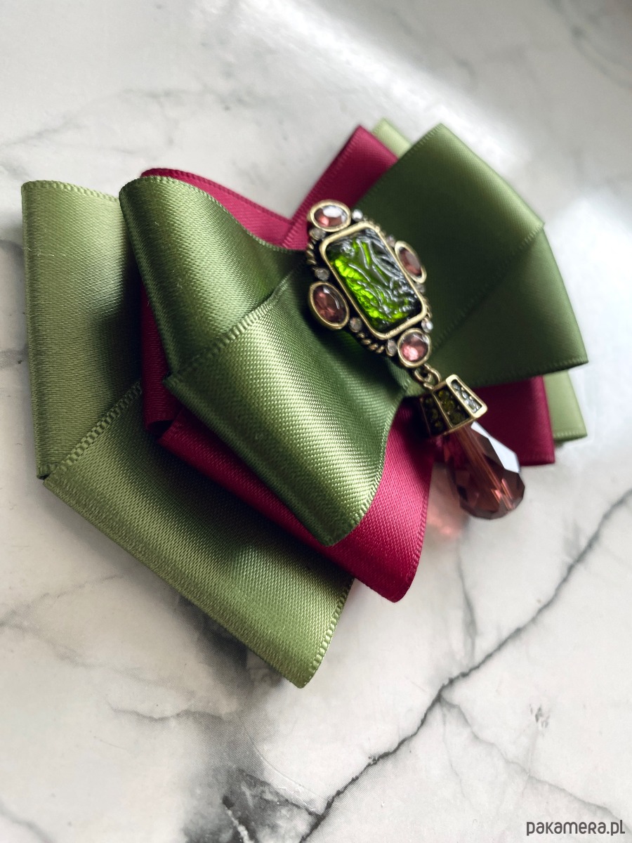 Broszka wykonana z wysokiej jakości taśm i dodatków.