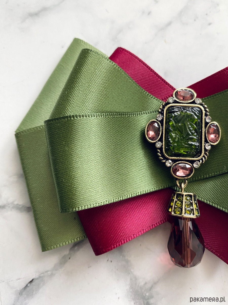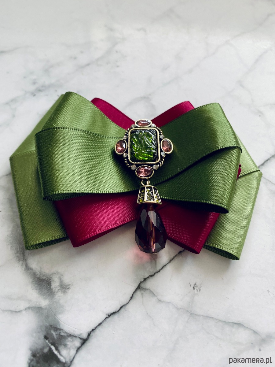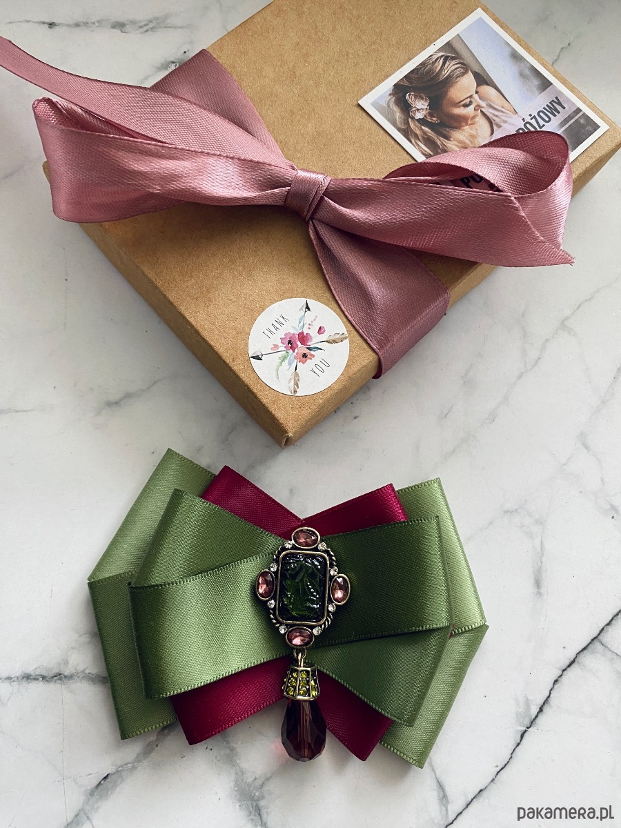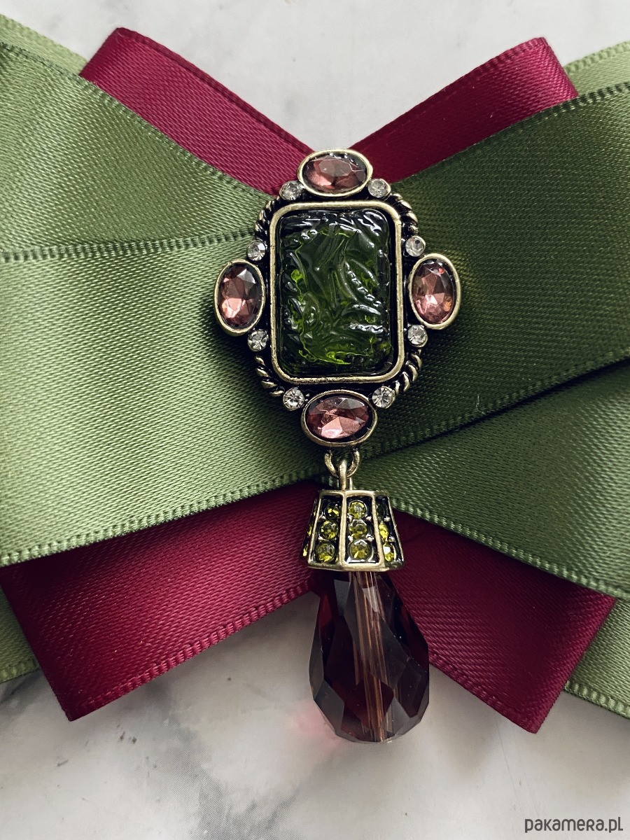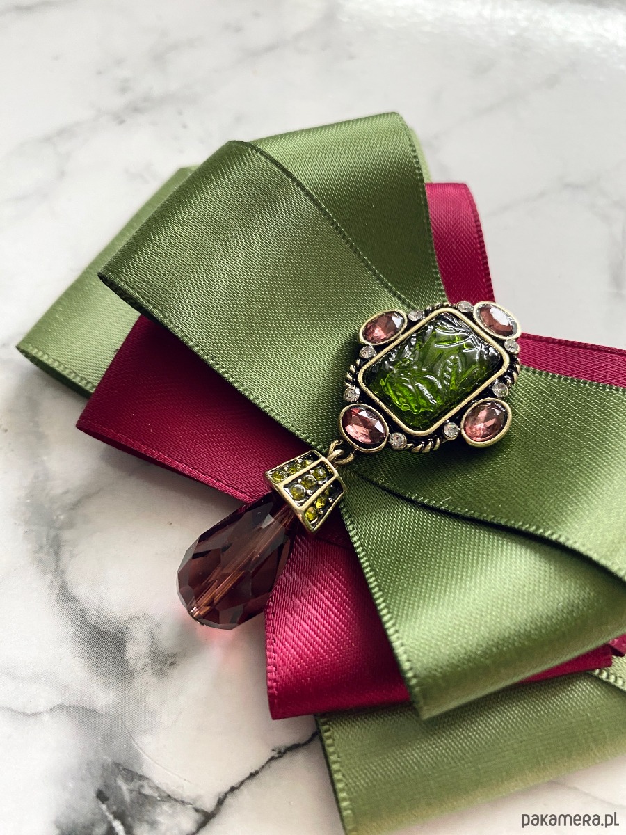 Broszka wykonana z wysokiej jakości taśm i dodatków.
