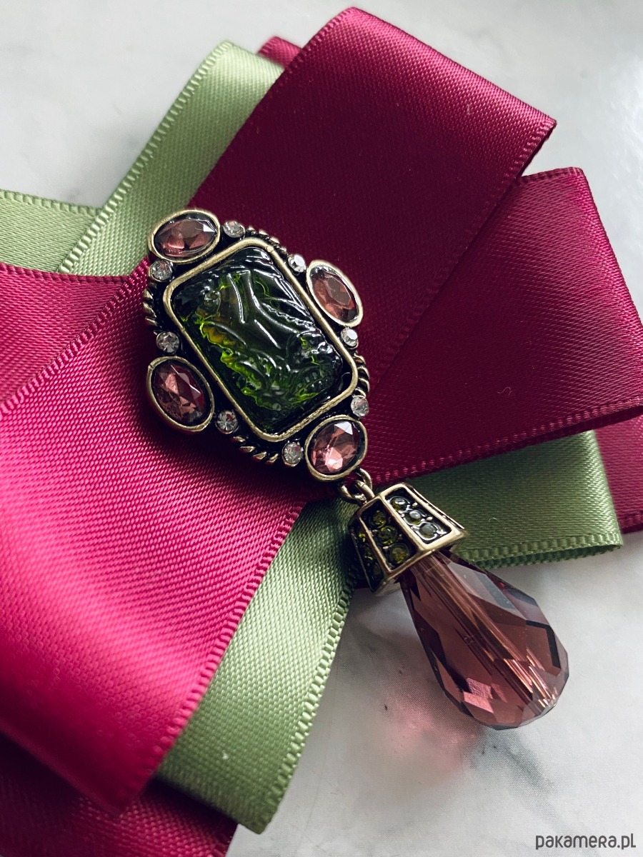 Broszka wykonana z wysokiej jakości taśm i dodatków.