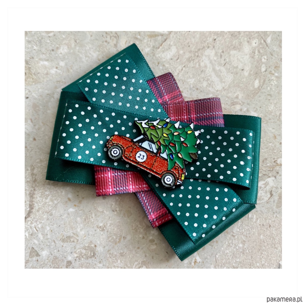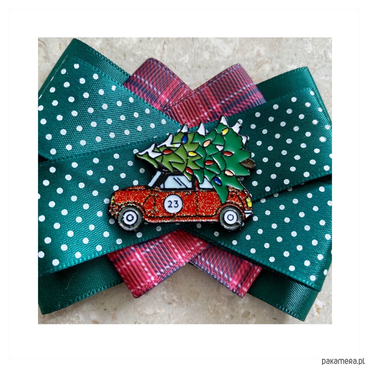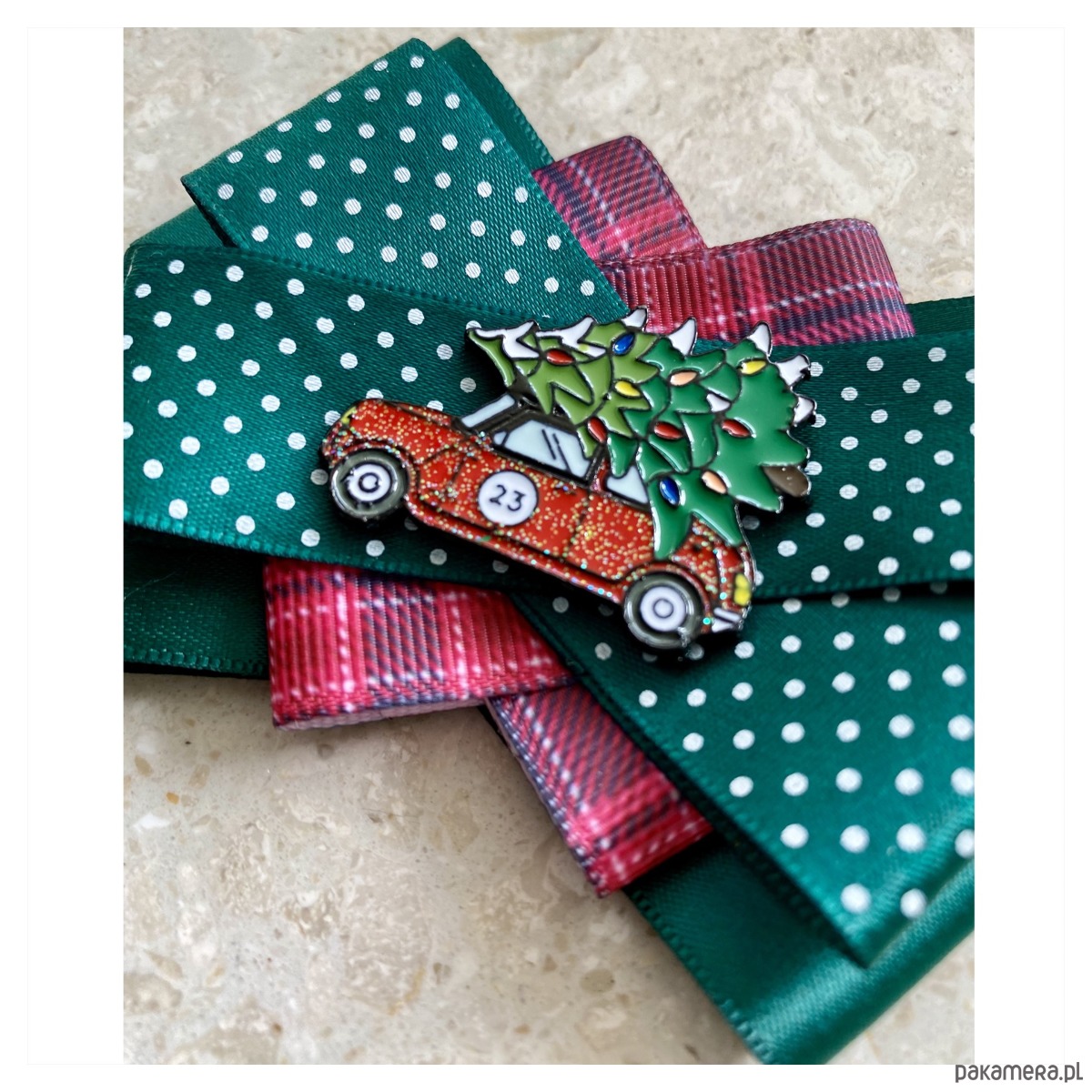 Broszki wykonane z wysokiej jakości taśm i dodatków. Na środku dekoracyjne auto z choinka na dachu. Broszki są cudownie słodkiie. Będą idealnie pasować zarówno do koszul, bluzek, swetrów, sukienek, żakietów oraz do płaszczy, kurtek, szali i chust. Idealna do każdej stylizacji, zarówno do sportowej jak również do eleganckich stylizacji.