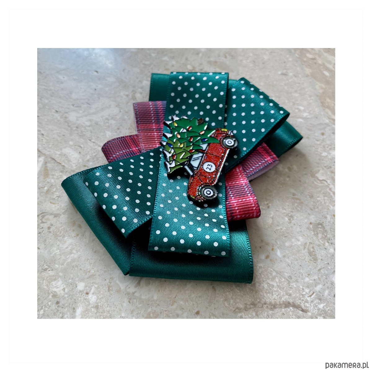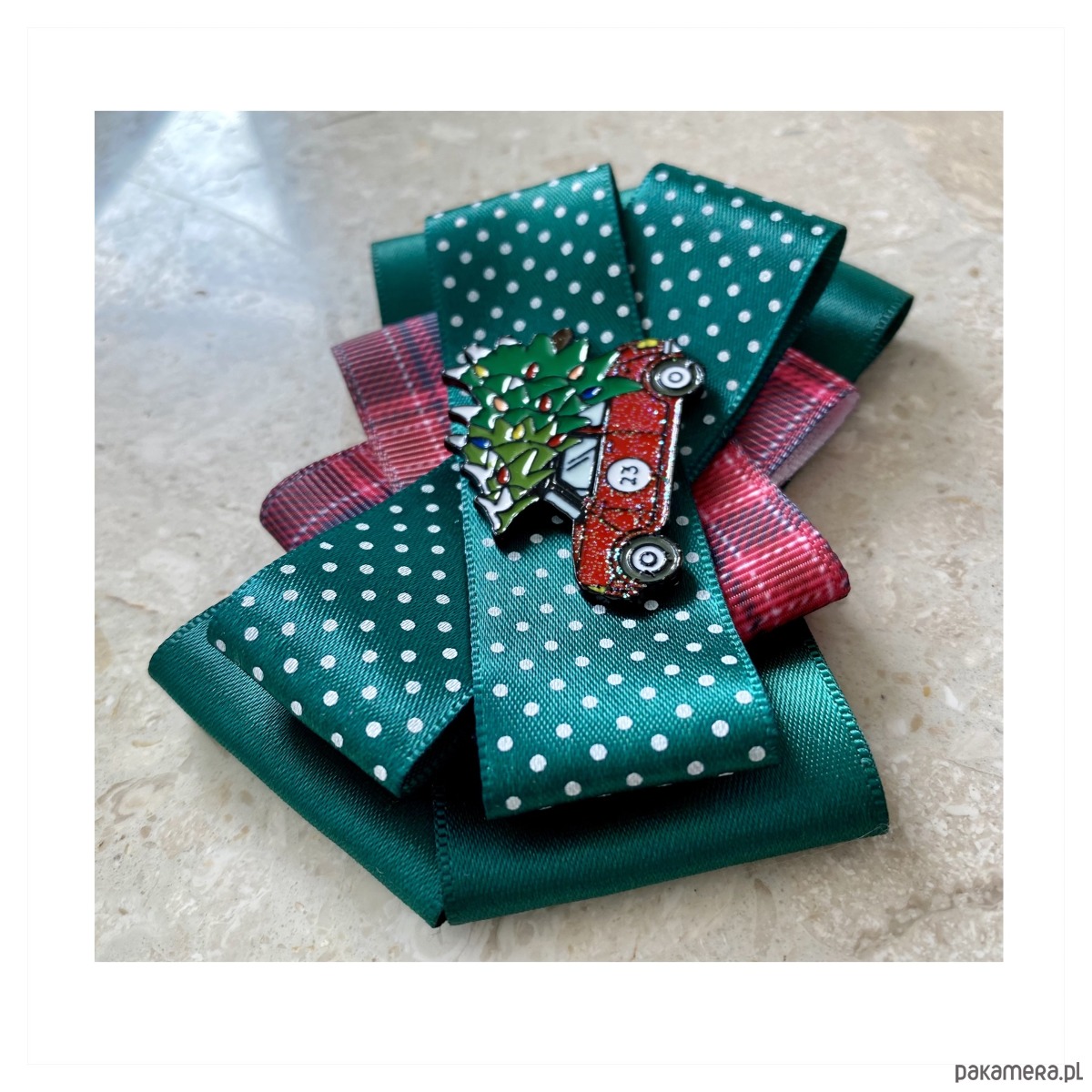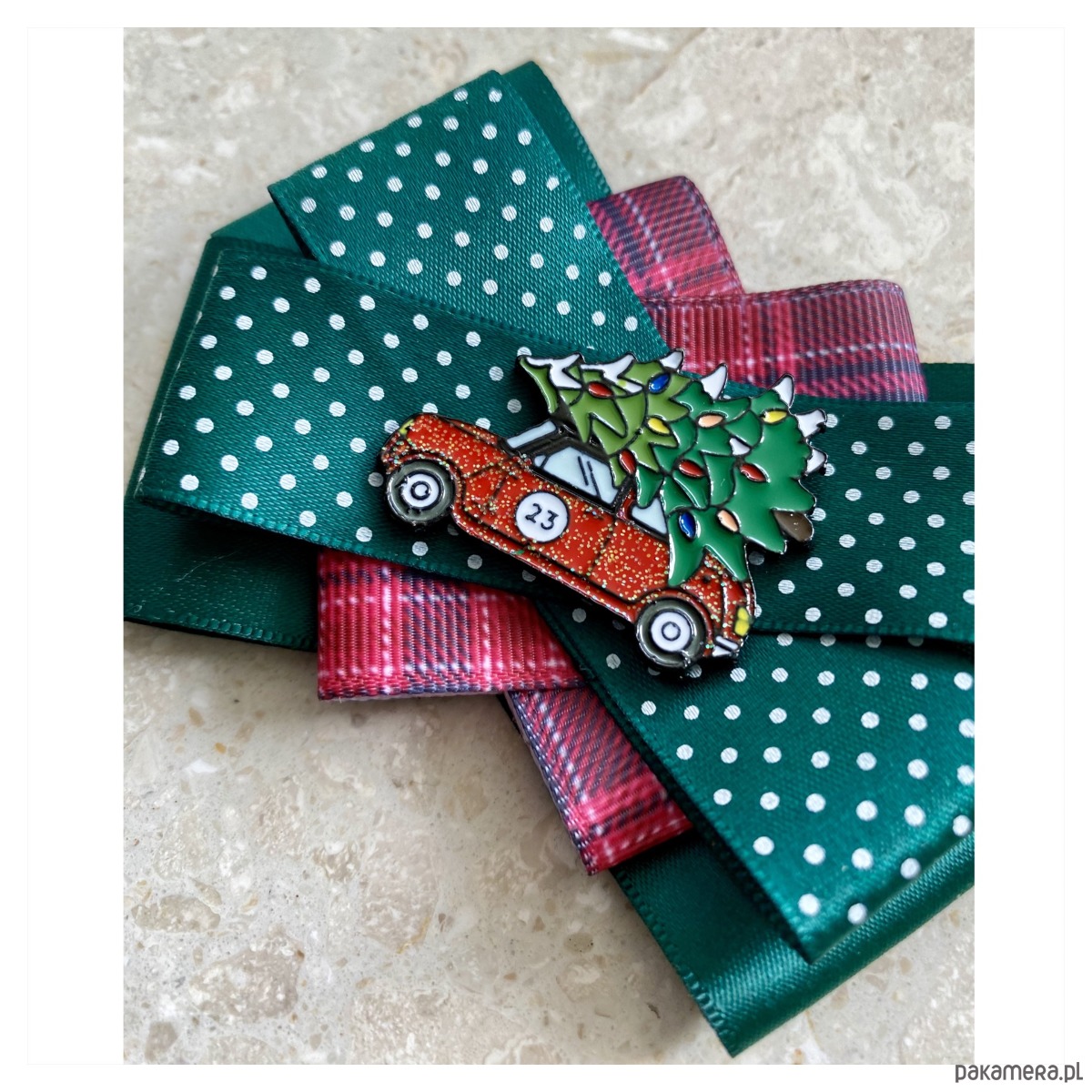 Broszki wykonane z wysokiej jakości taśm i dodatków. Na środku dekoracyjne auto z choinka na dachu. Broszki są cudownie słodkiie. Będą idealnie pasować zarówno do koszul, bluzek, swetrów, sukienek, żakietów oraz do płaszczy, kurtek, szali i chust. Idealna do każdej stylizacji, zarówno do sportowej jak również do eleganckich stylizacji.