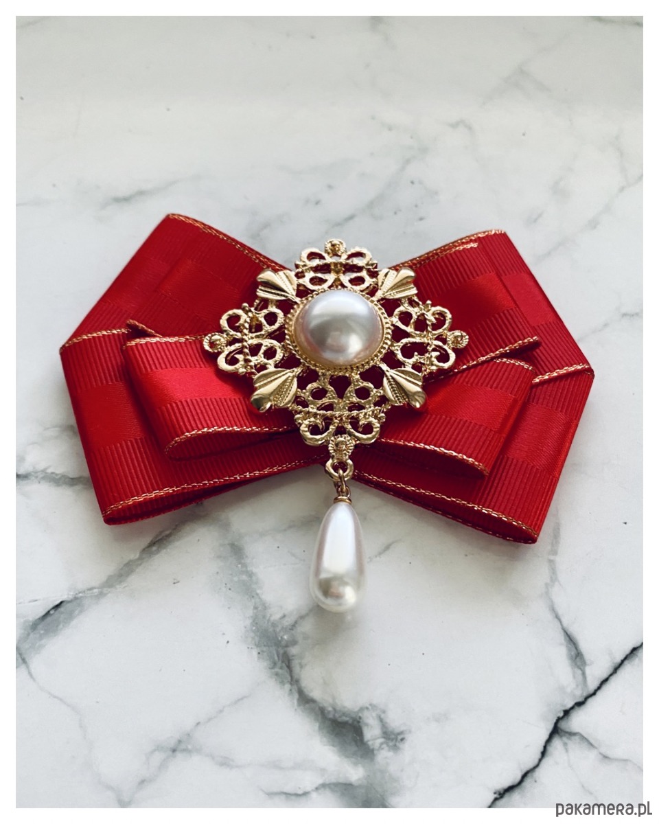 Broszka wykonana z wysokiej jakości taśm i dodatków.