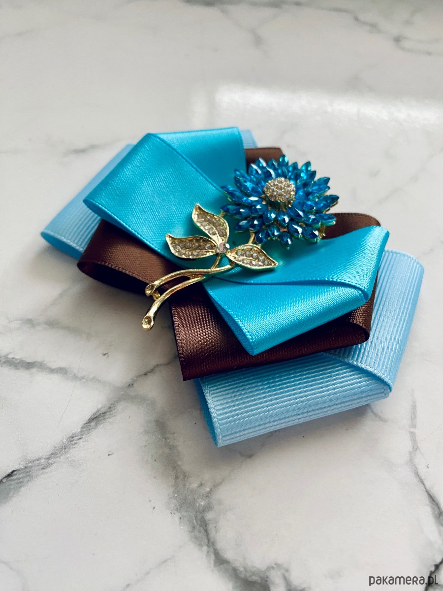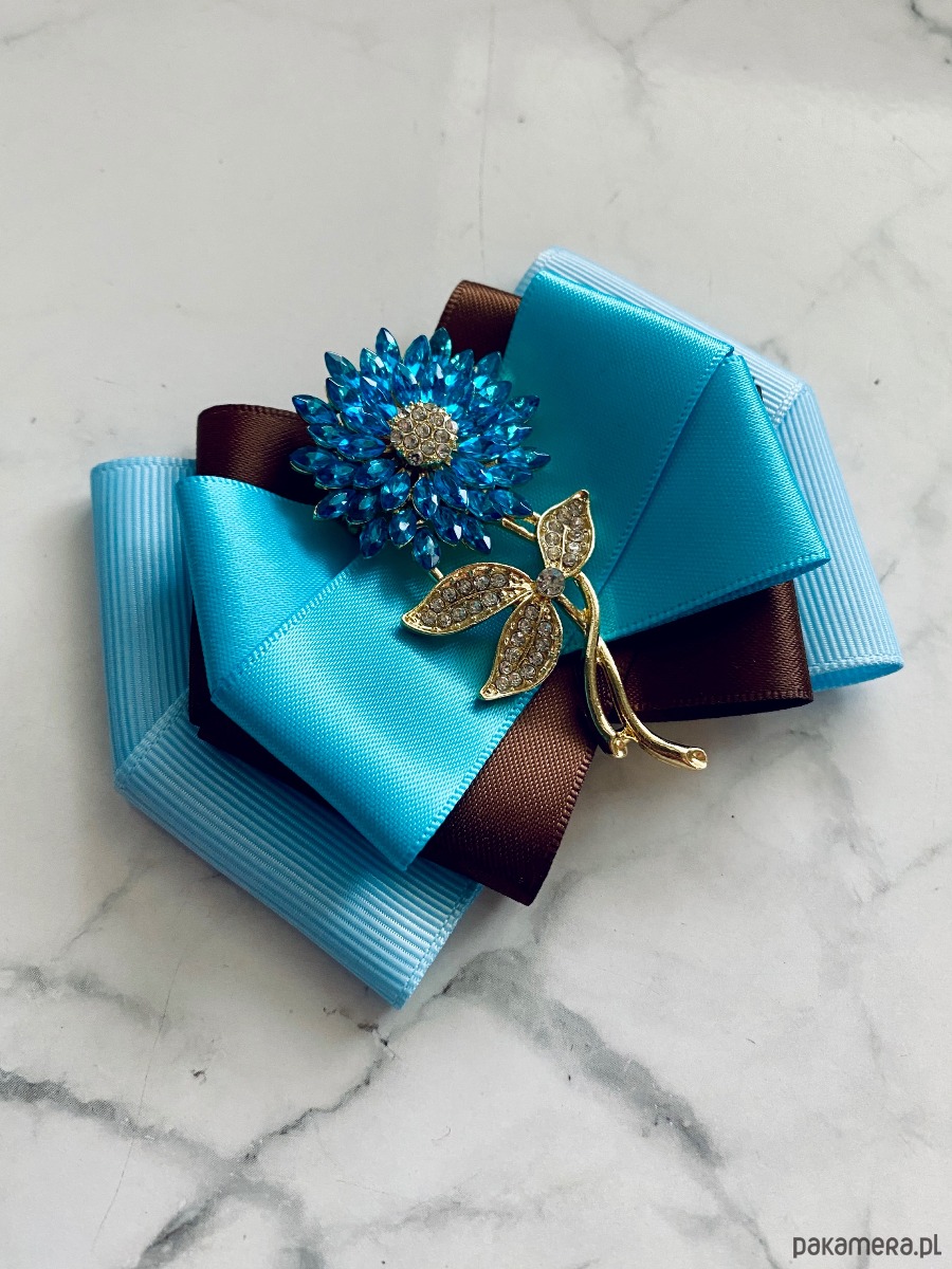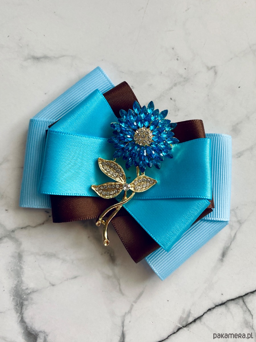 Broszka wykonana z wysokiej jakości taśm i dodatków.
