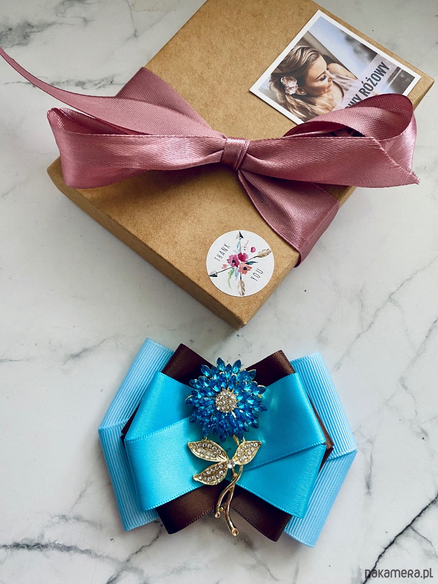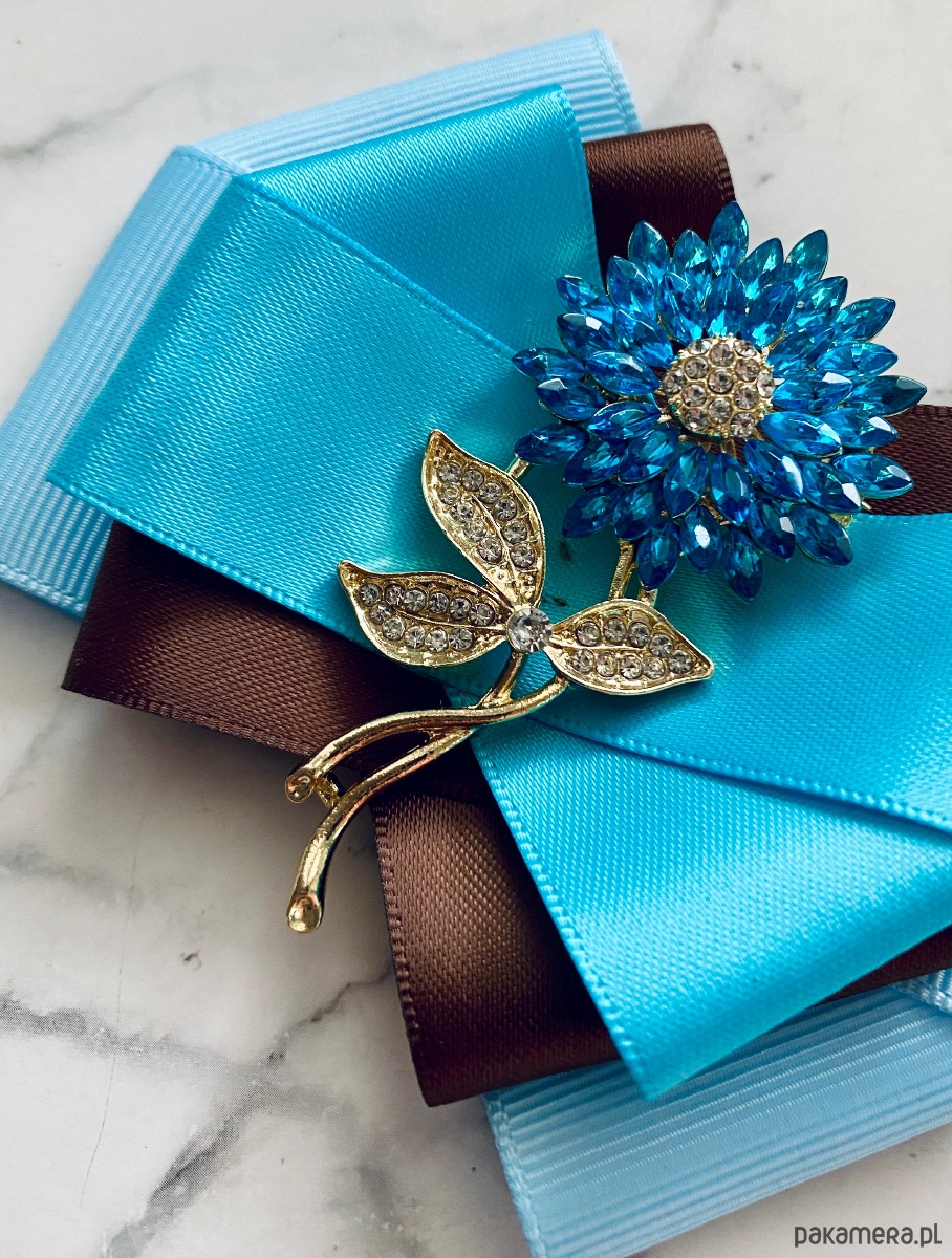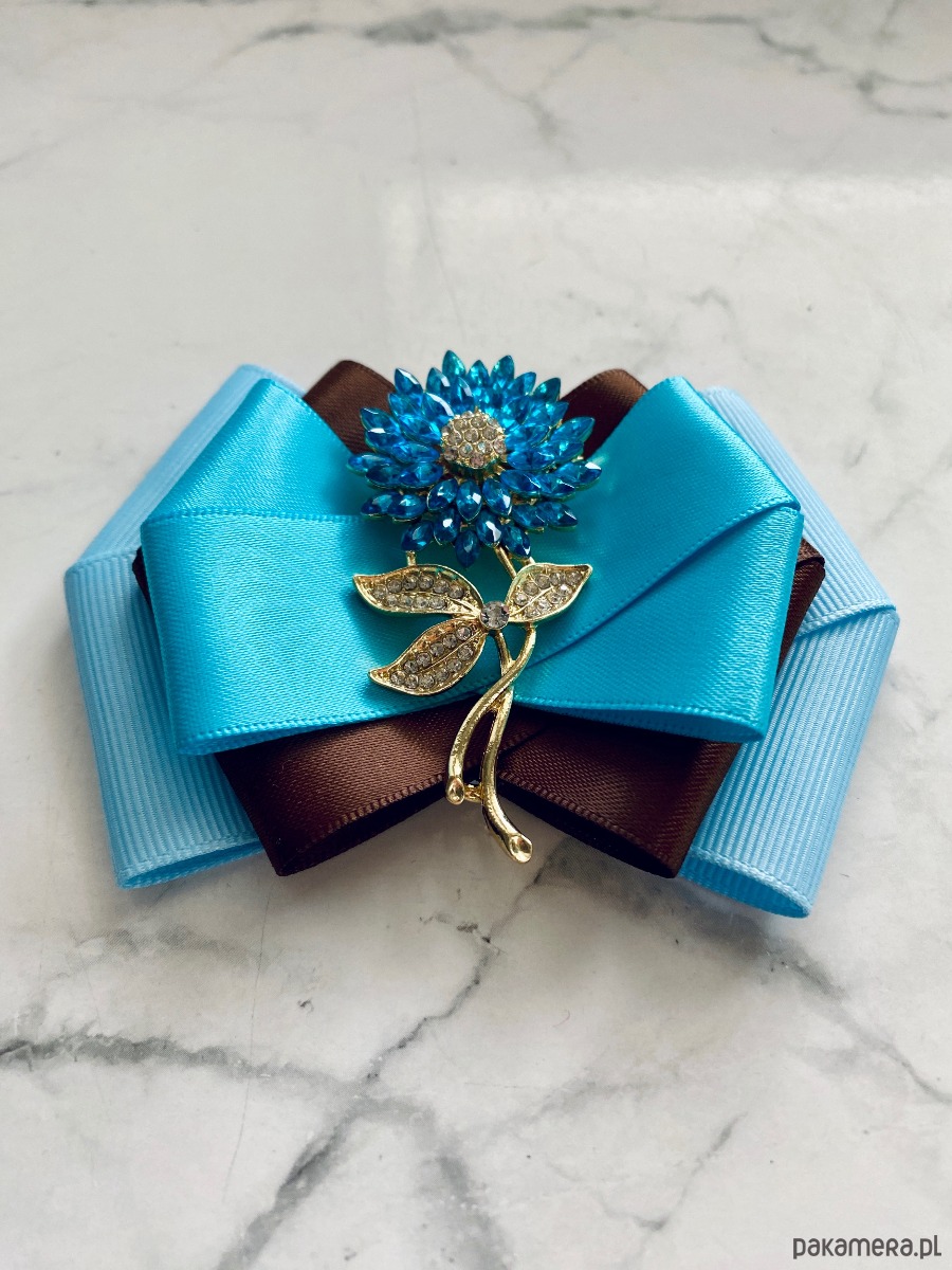 Broszka wykonana z wysokiej jakości taśm i dodatków.
