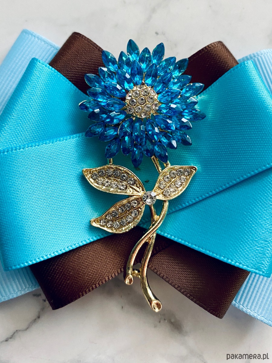 Brosza z błękitnym Kwiatem z kryształków Nowość