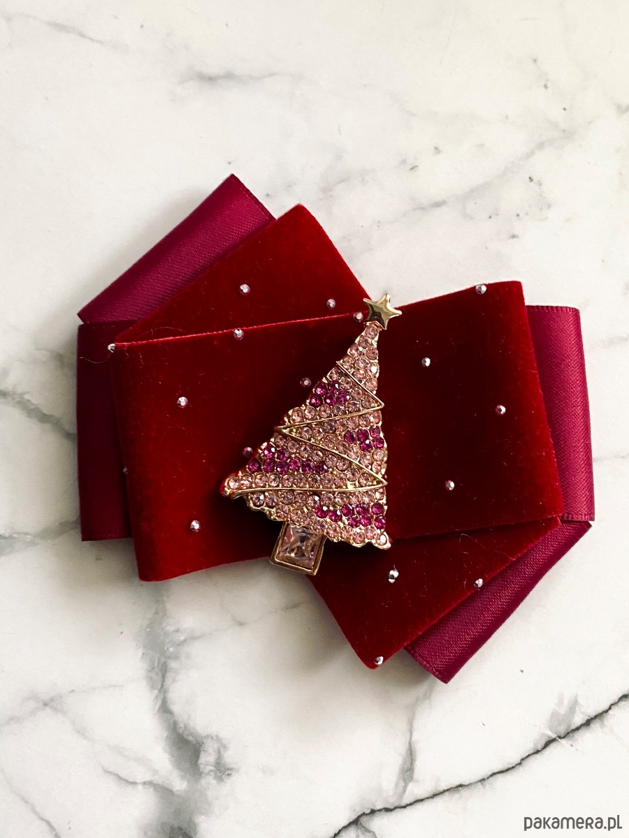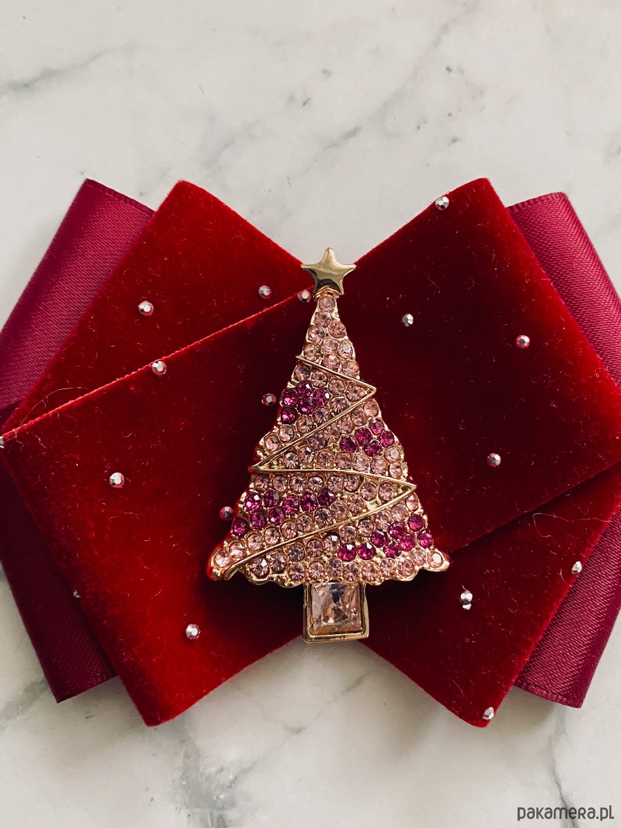 Broszka wykonana z wysokiej jakości taśm i dodatków.