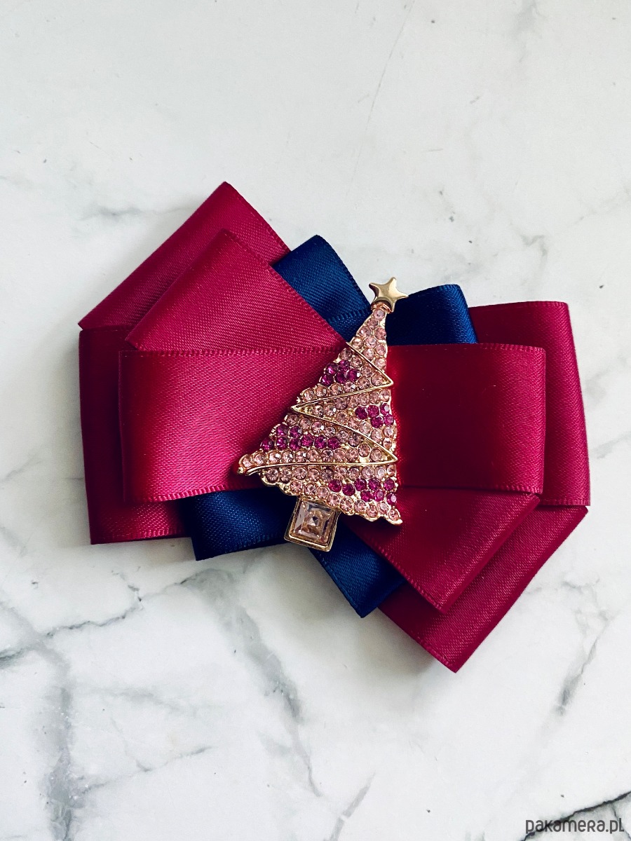 Broszka wykonana z wysokiej jakości taśm i dodatków.