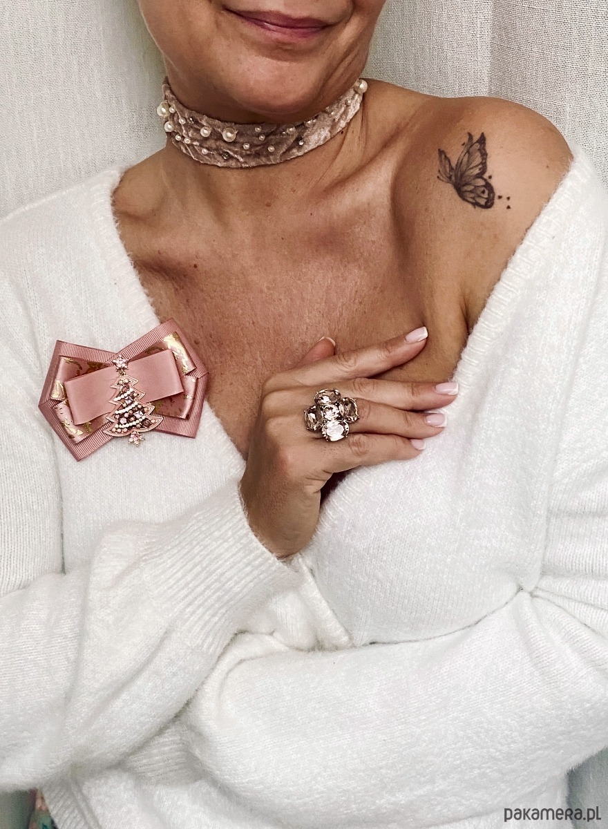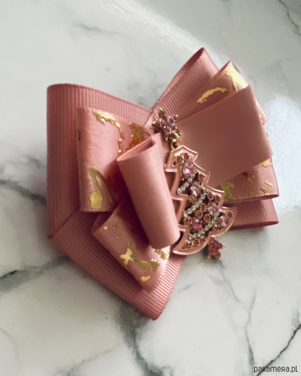 Broszka wykonana z wysokiej jakości taśm i dodatków.