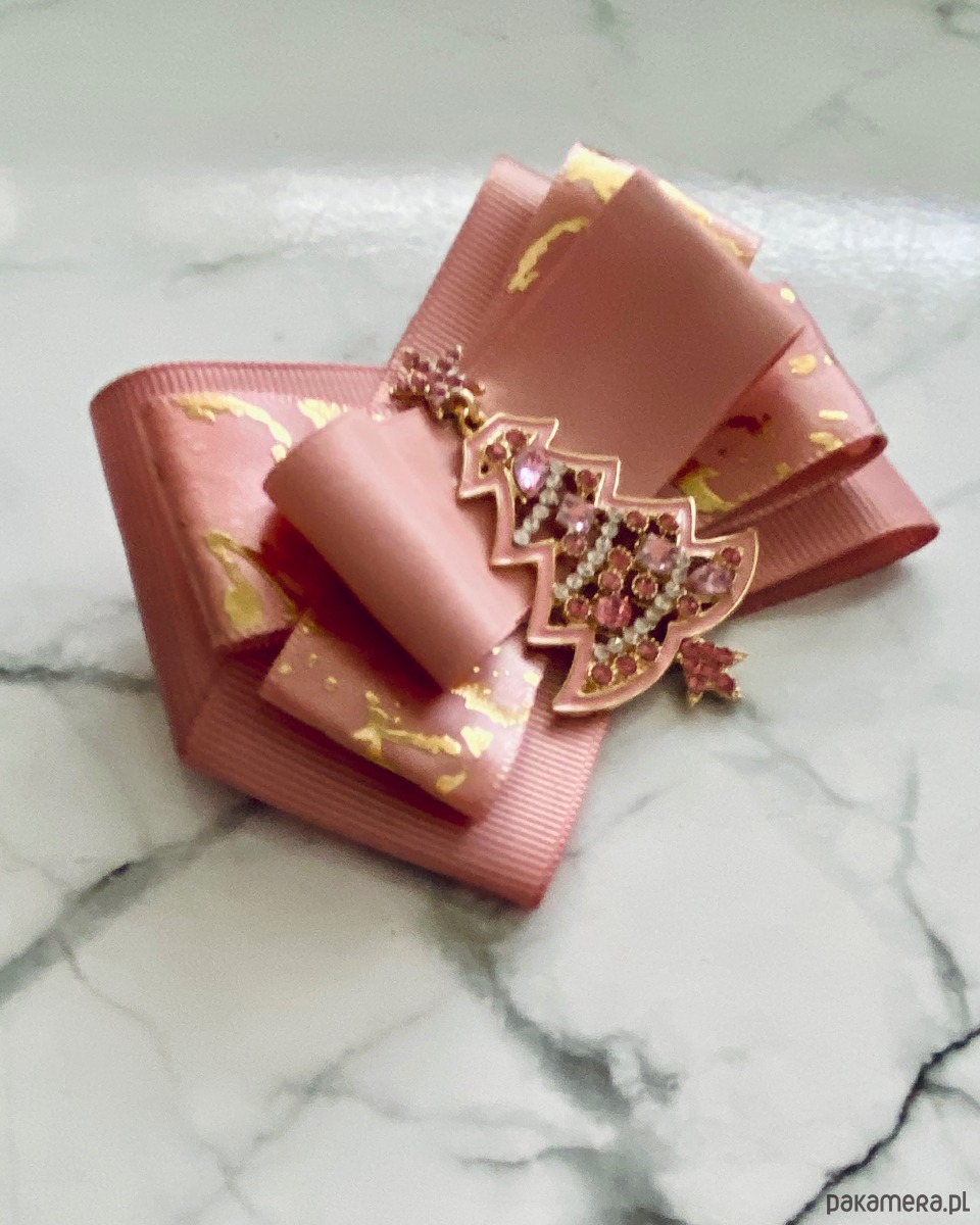 Broszka wykonana z wysokiej jakości taśm i dodatków.