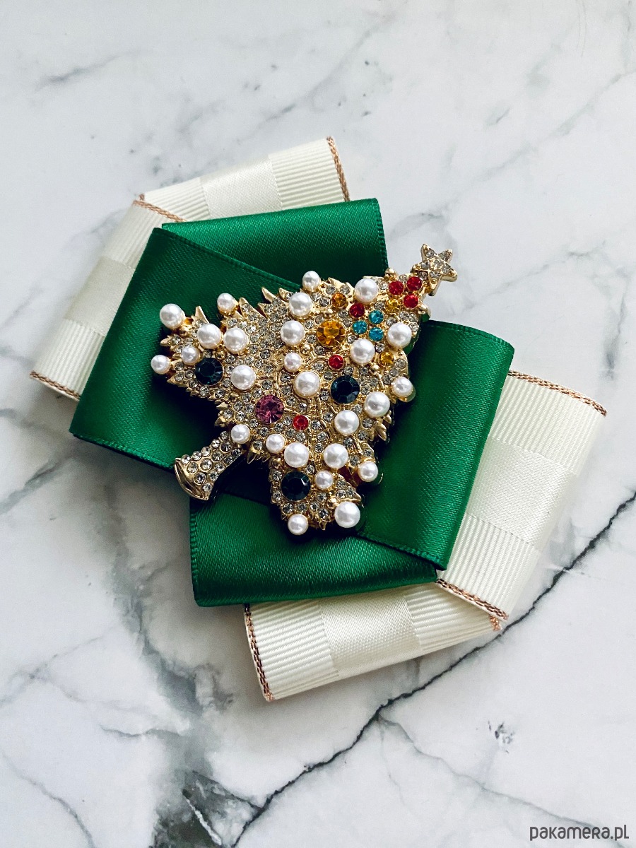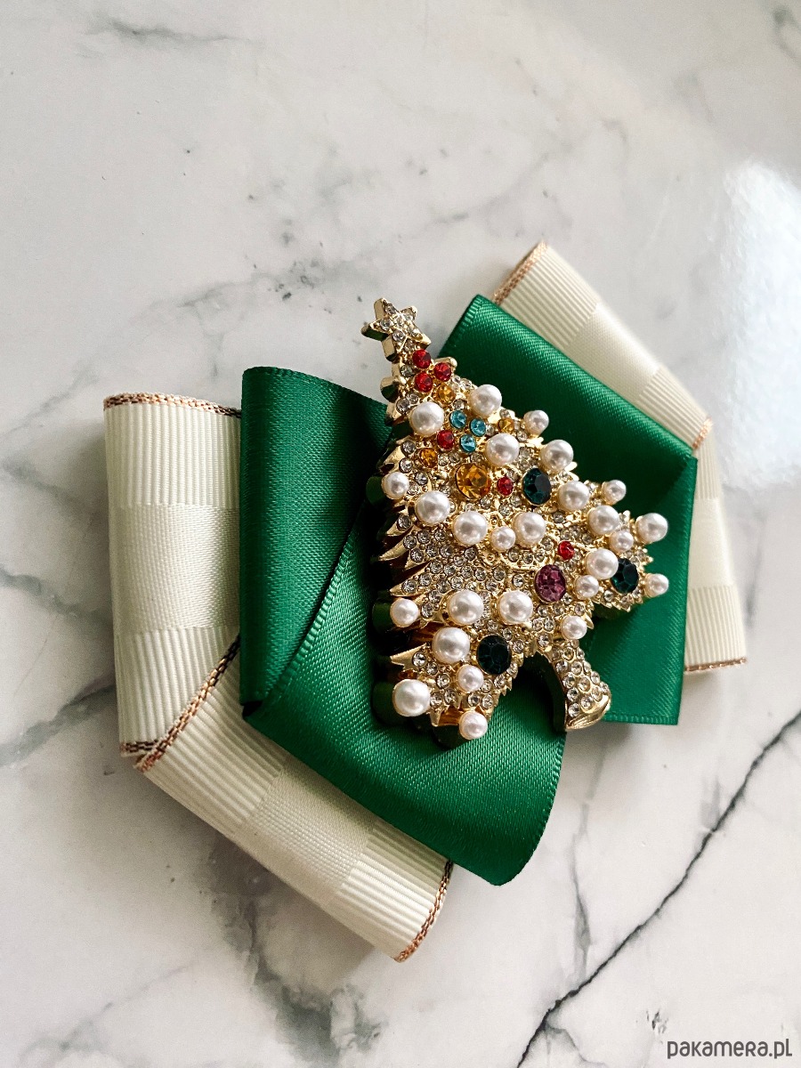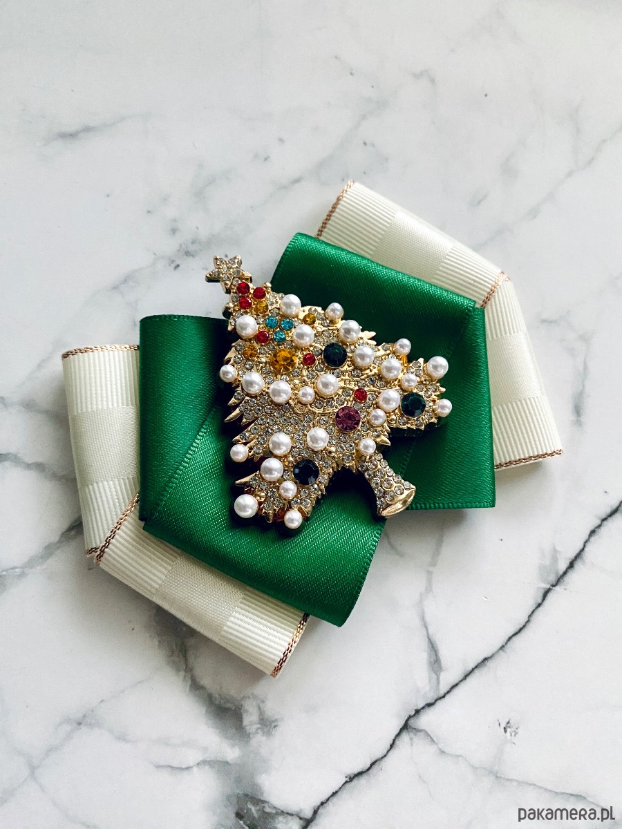 Broszka wykonana z wysokiej jakości taśm i dodatków.
