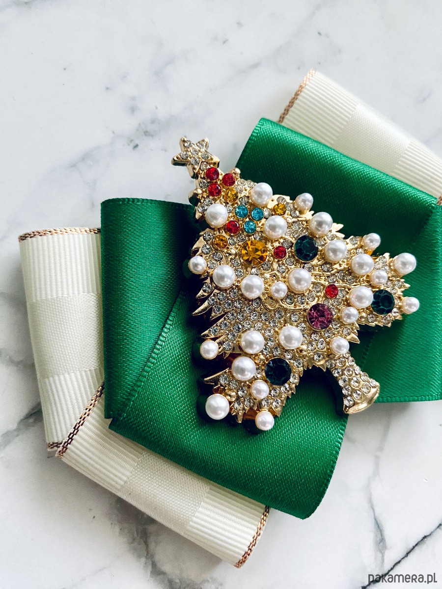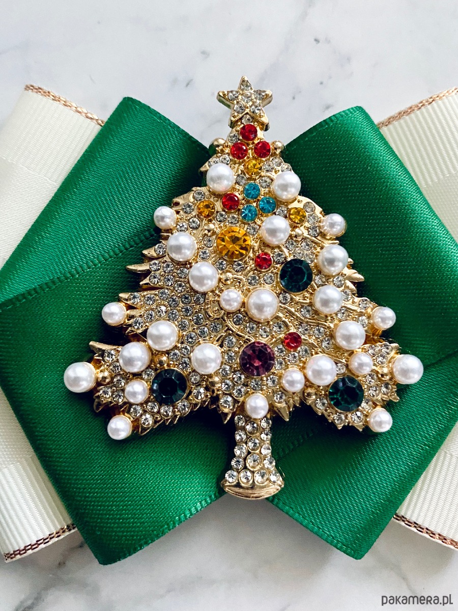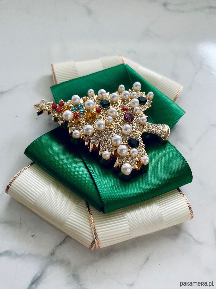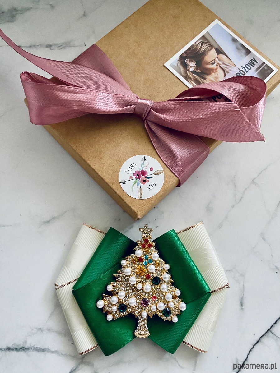 Broszka wykonana z wysokiej jakości taśm i dodatków.