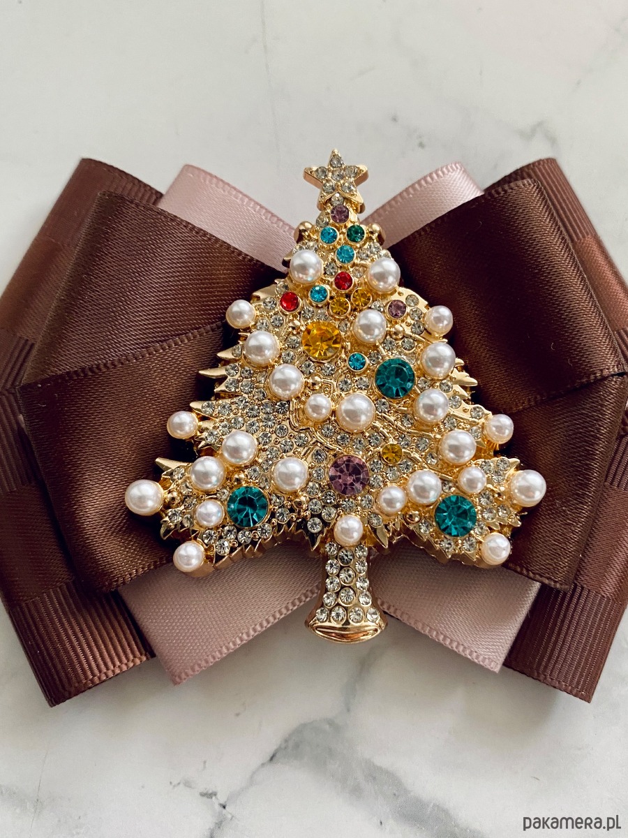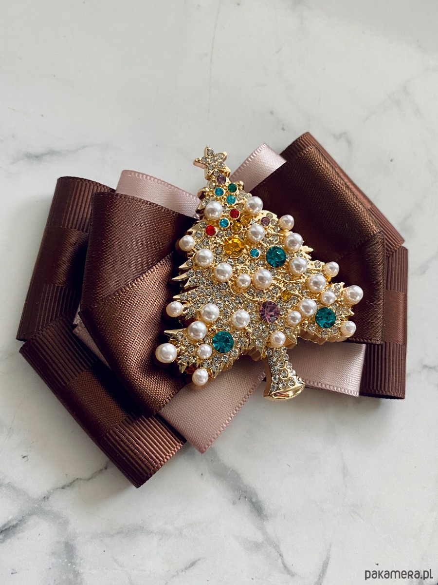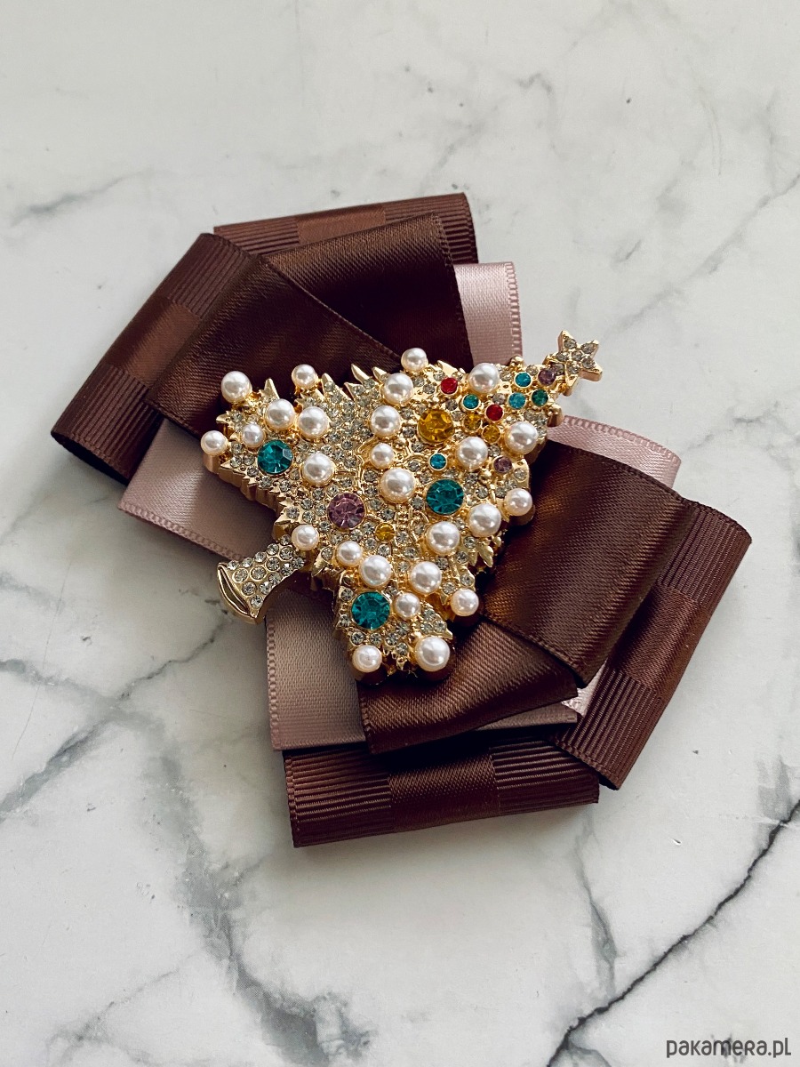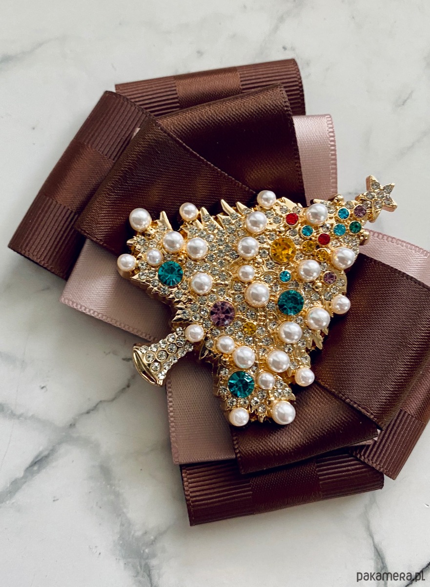 Broszka wykonana z wysokiej jakości taśm i dodatków.