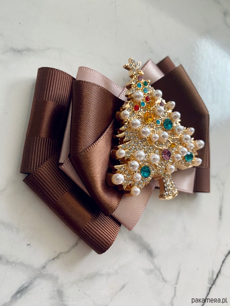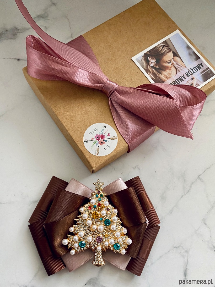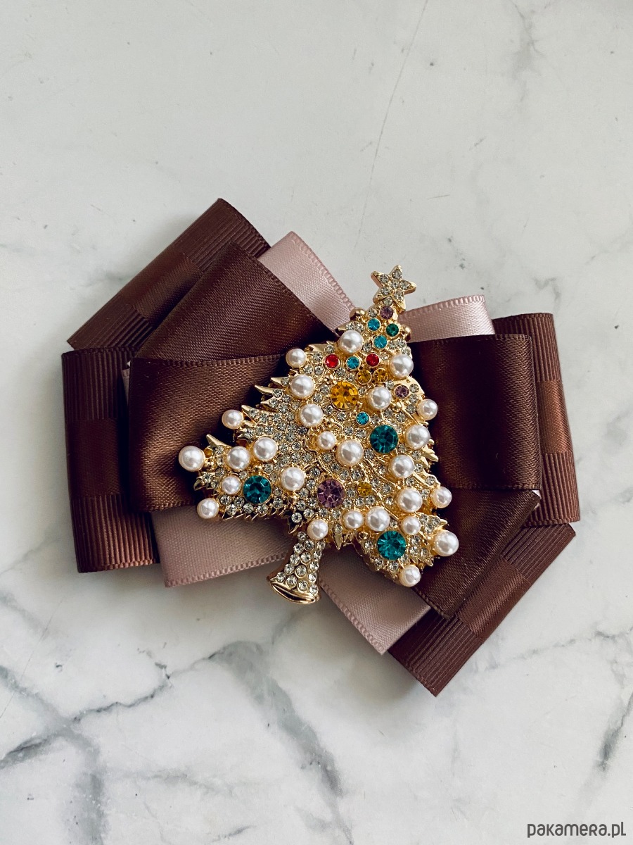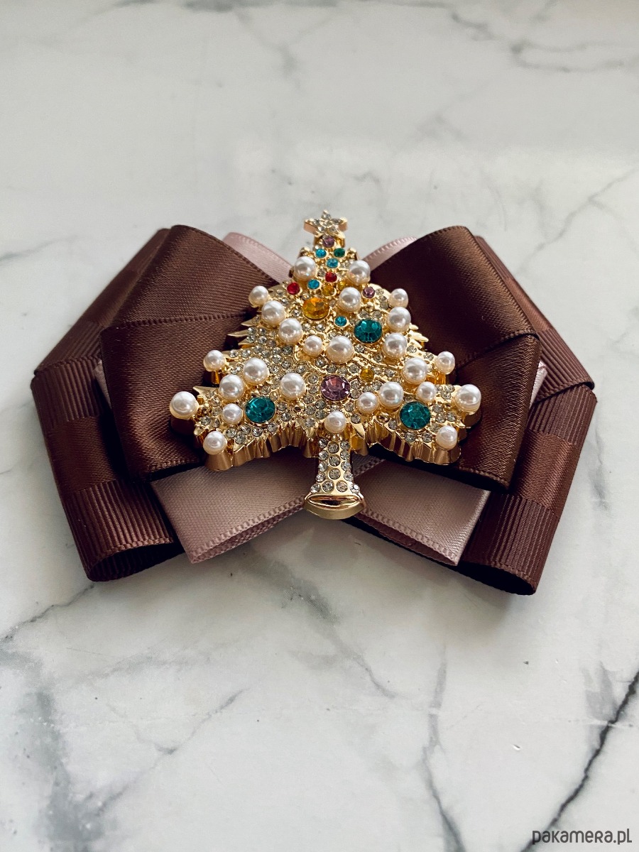 Broszka wykonana z wysokiej jakości taśm i dodatków.
