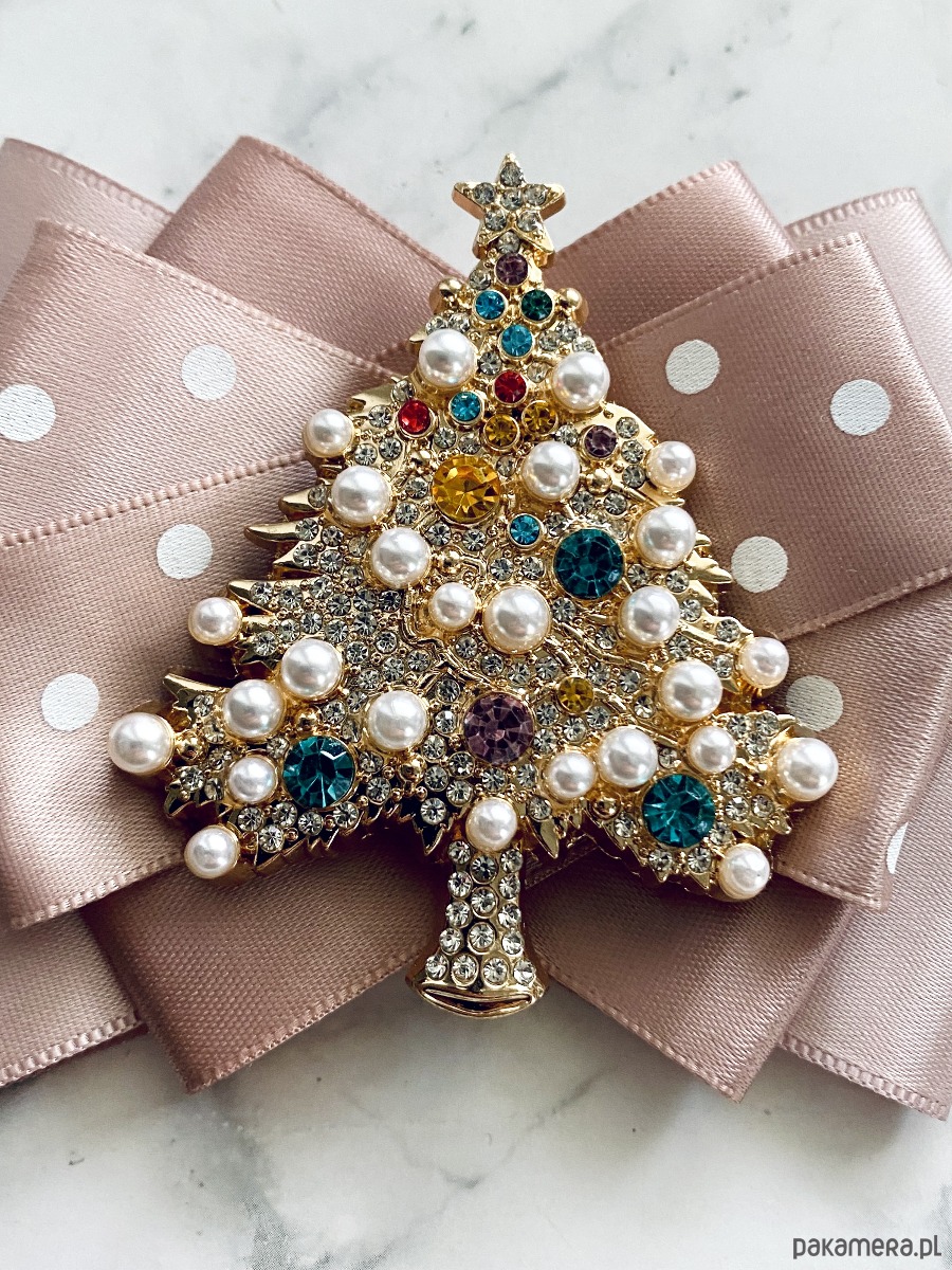 Brosza z Choinką z perłami Mikołajki Święta