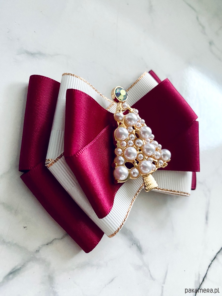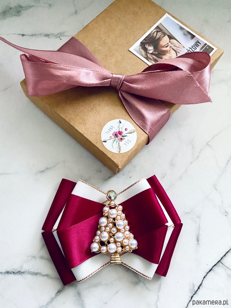 Broszka wykonana z wysokiej jakości taśm i dodatków.