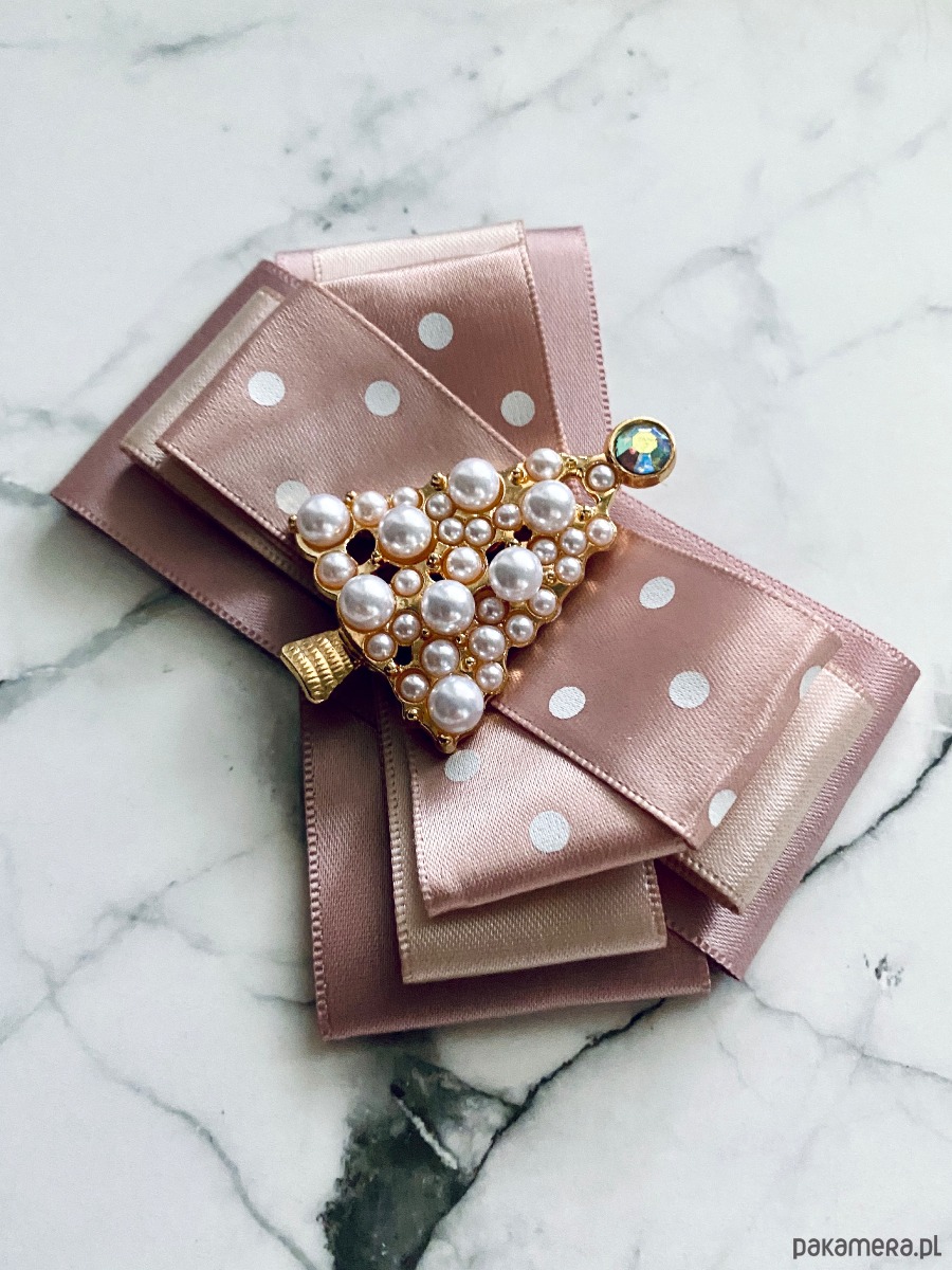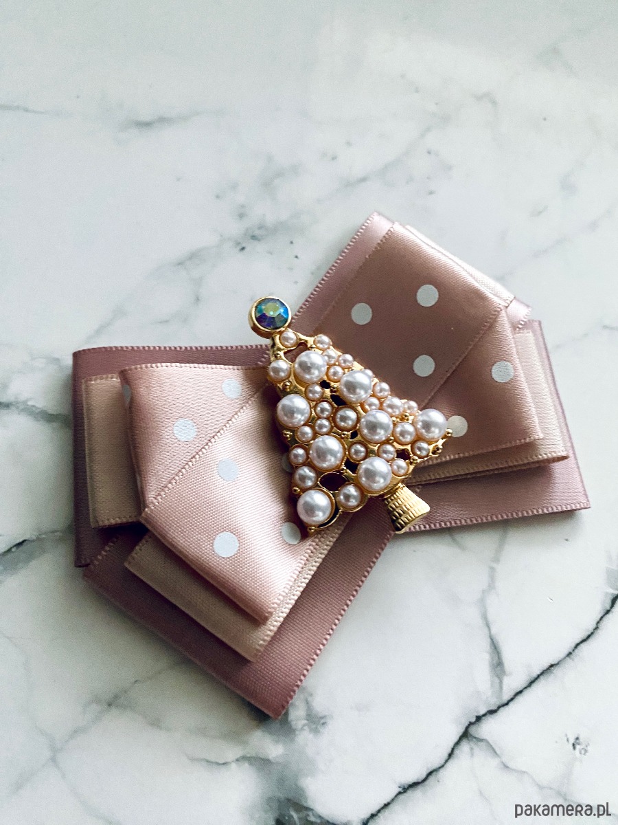 Broszka wykonana z wysokiej jakości taśm i dodatków.