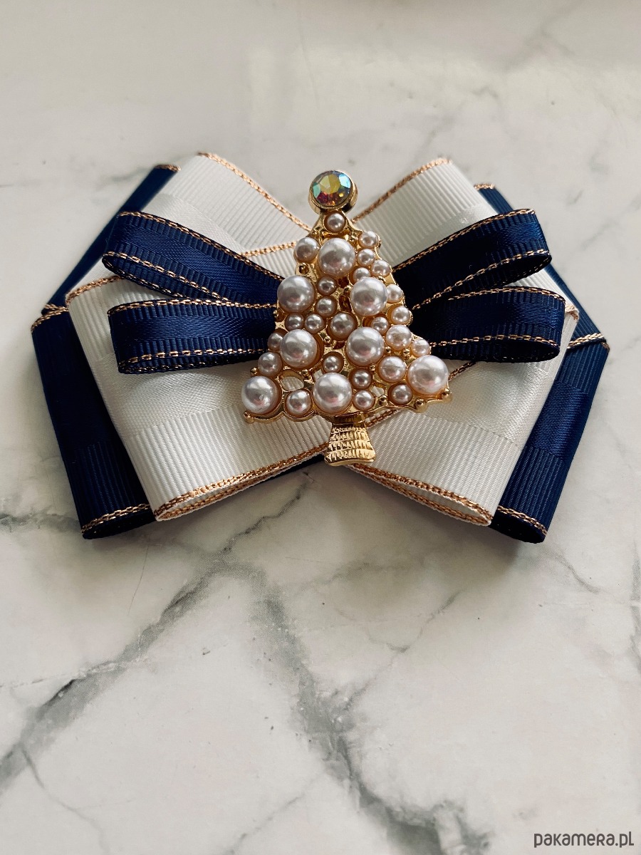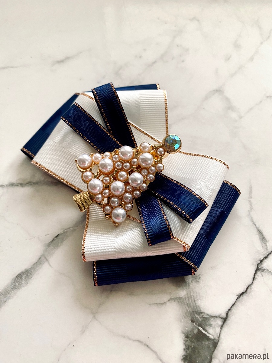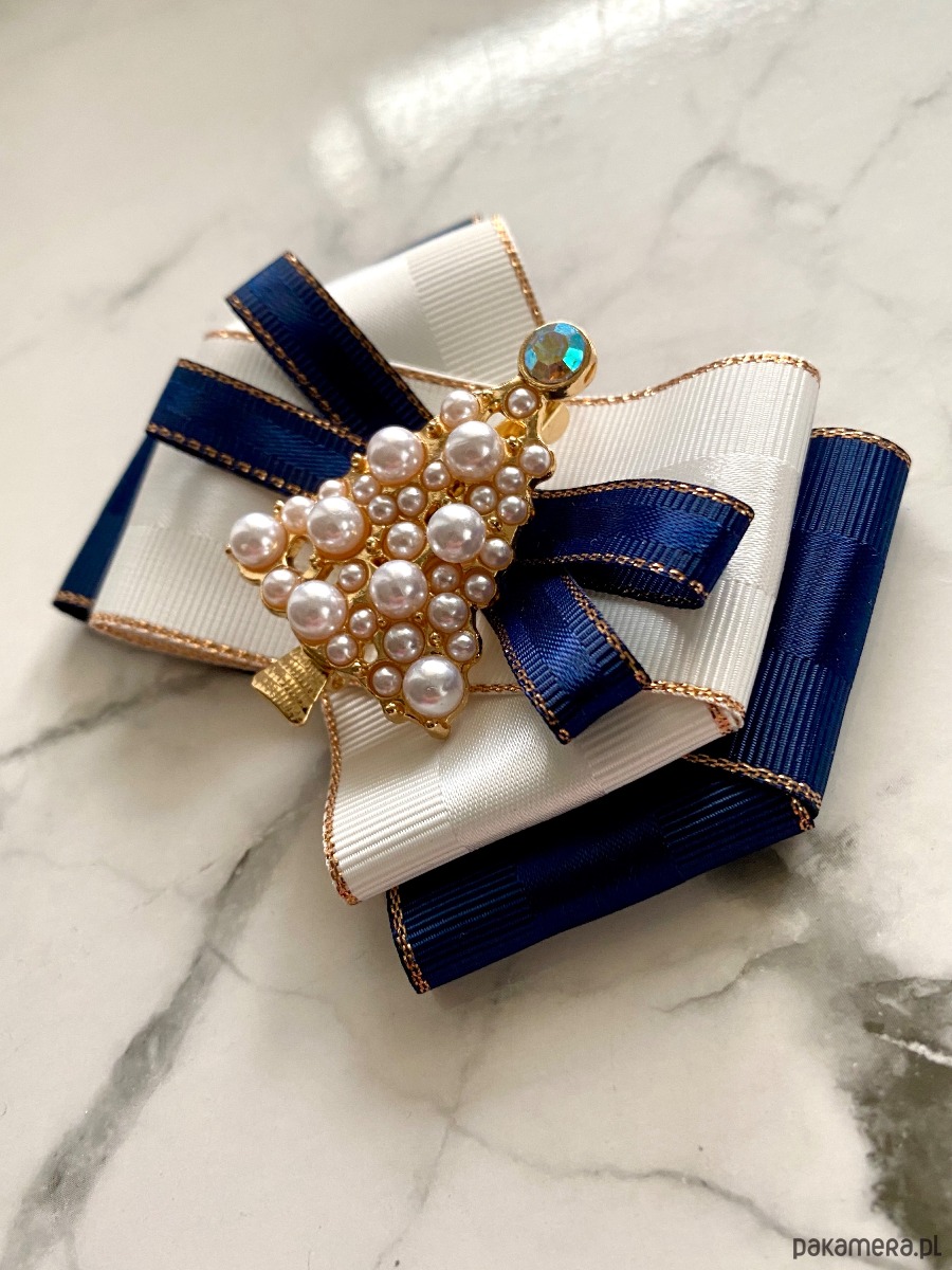 Broszka wykonana z wysokiej jakości taśm i dodatków.