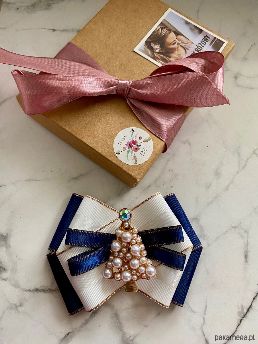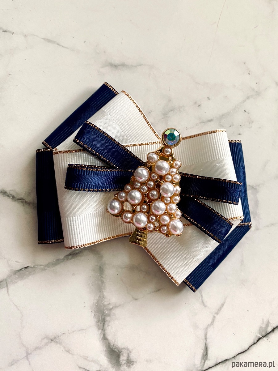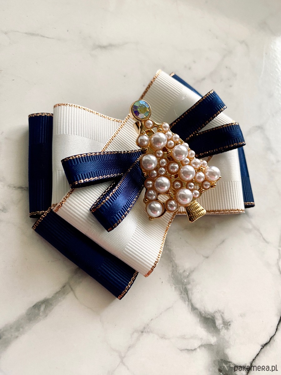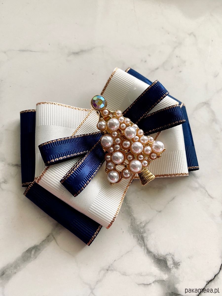 Broszka wykonana z wysokiej jakości taśm i dodatków.