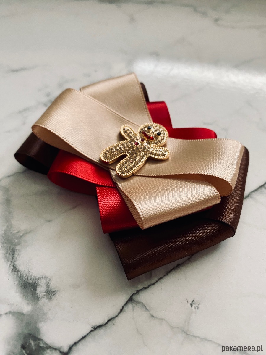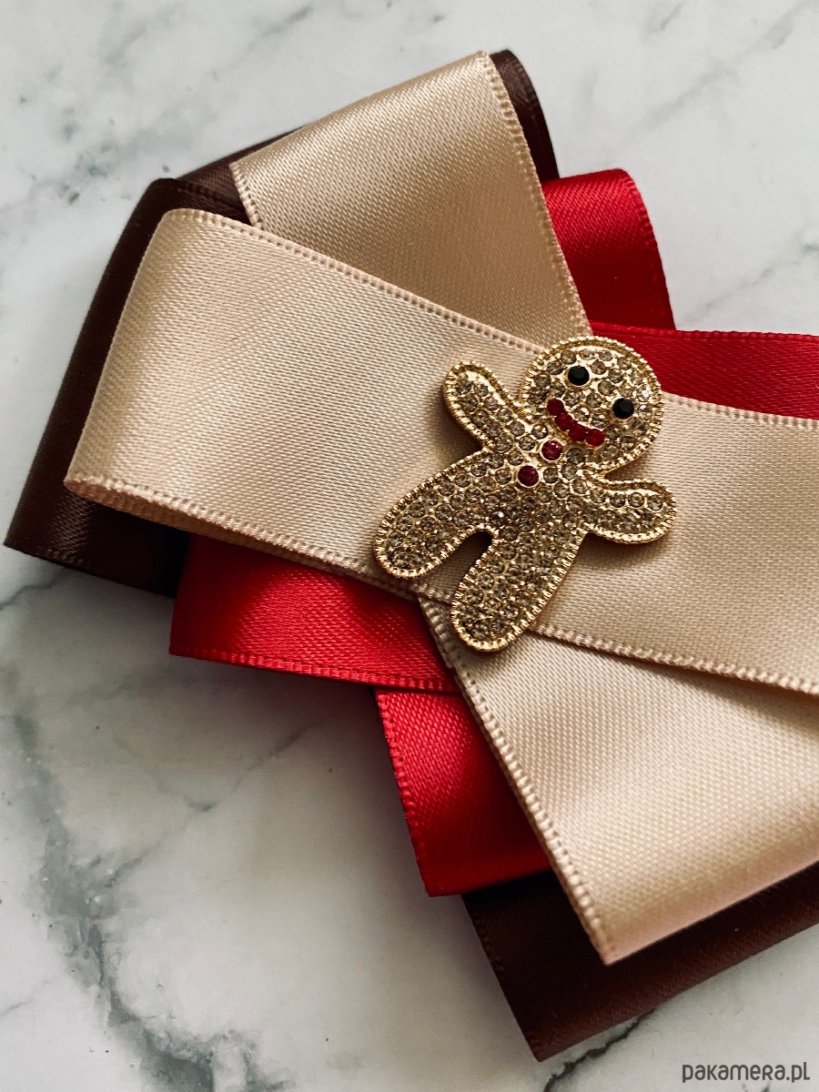 Broszka wykonana z wysokiej jakości taśm i dodatków.