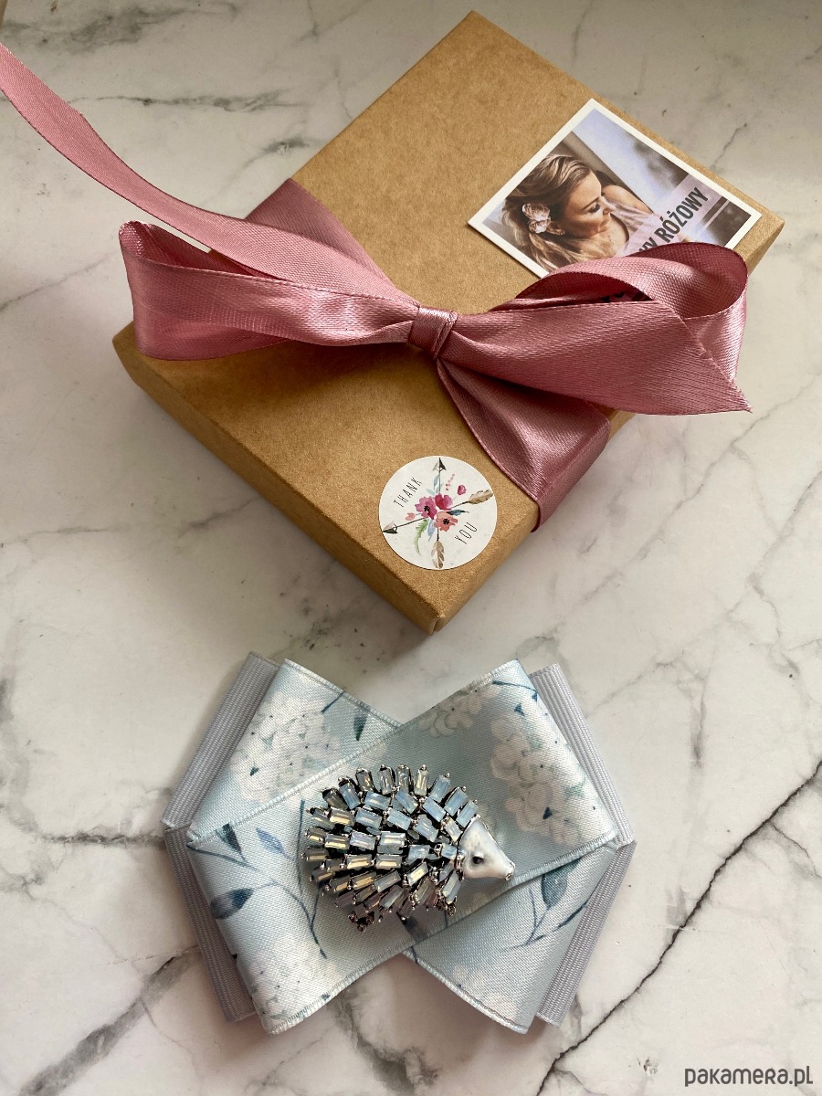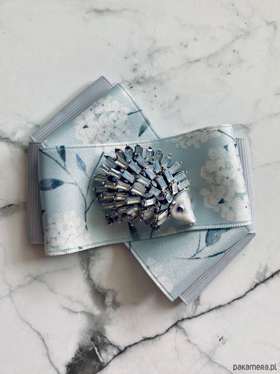 Broszka wykonana z wysokiej jakości taśm i dodatków.