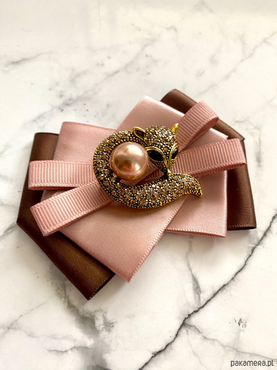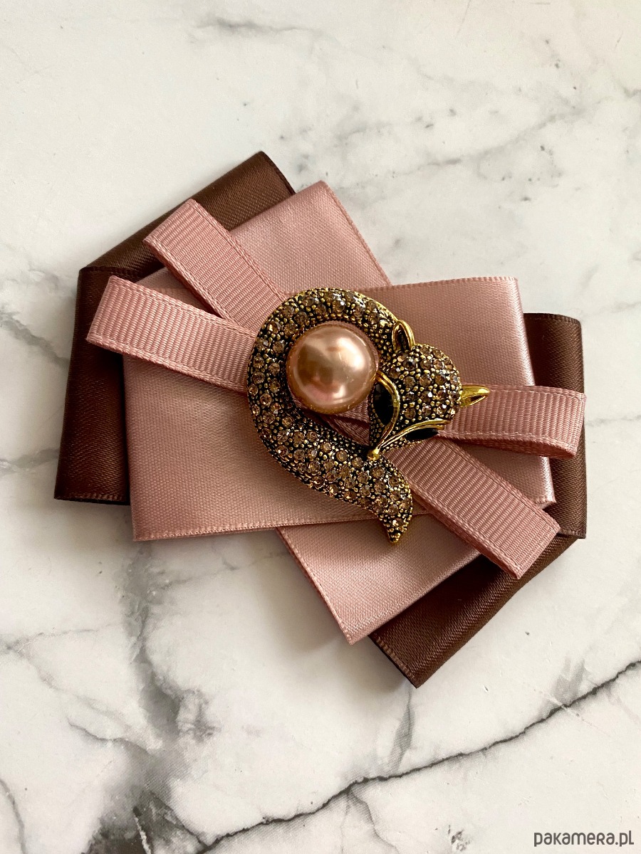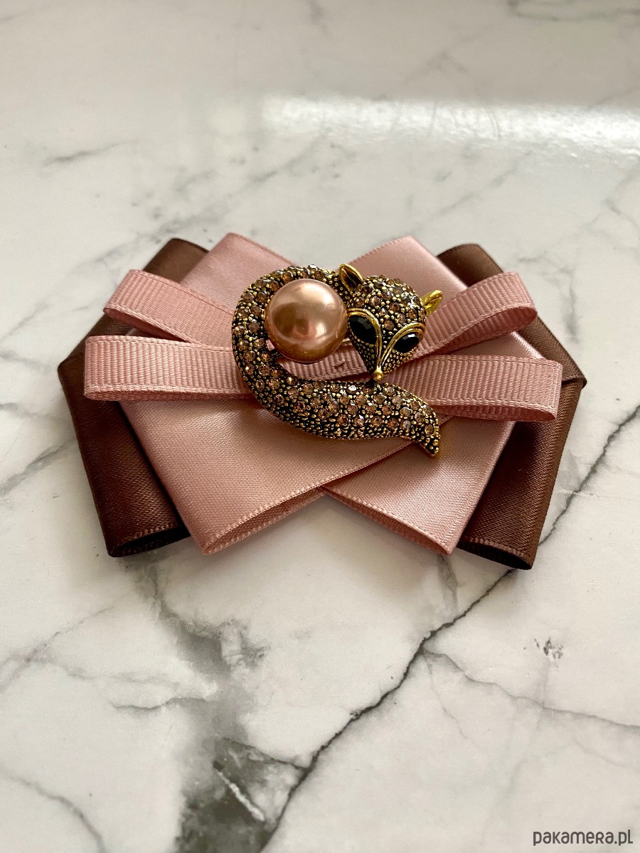 Broszka wykonana z wysokiej jakości taśm i dodatków.