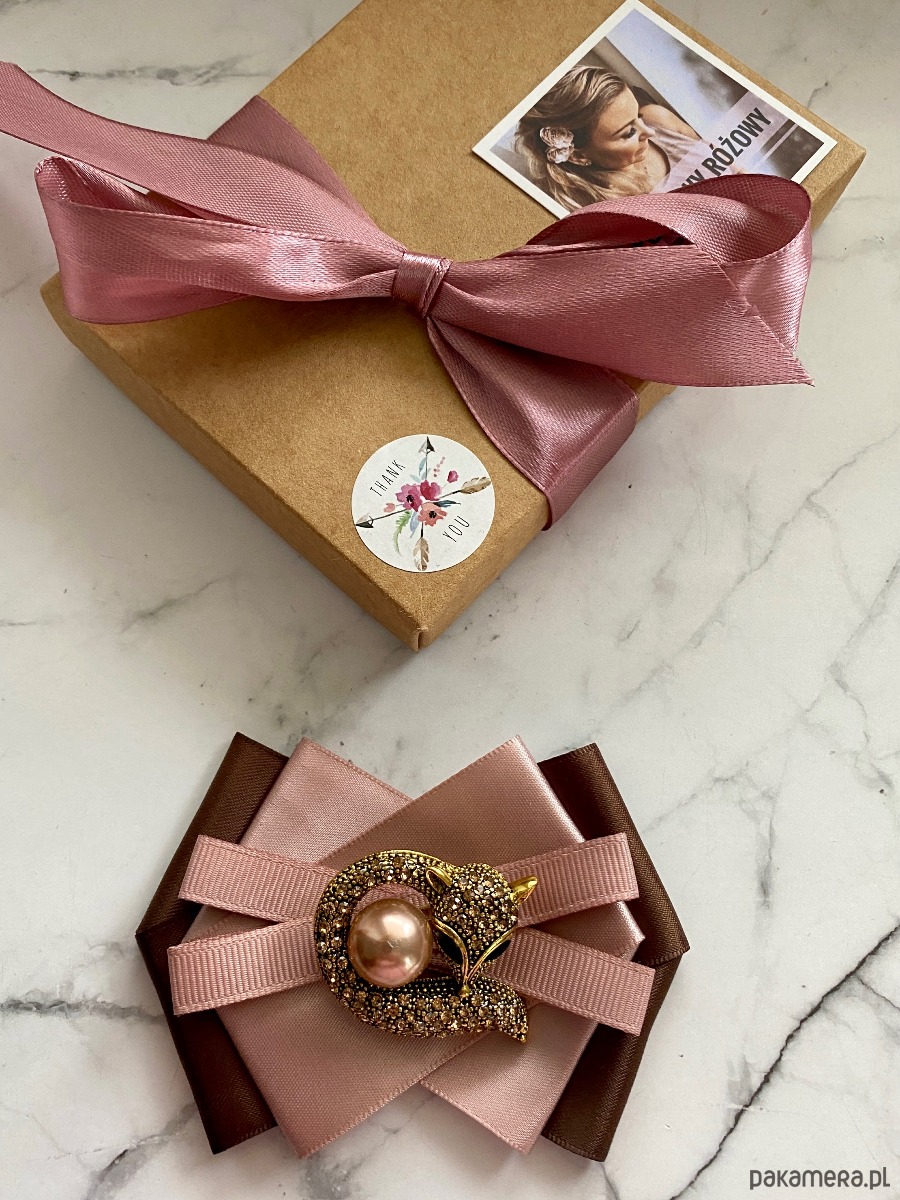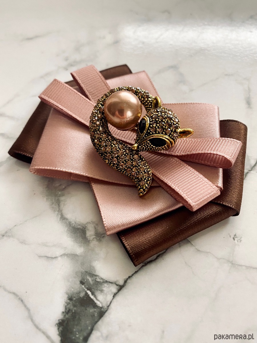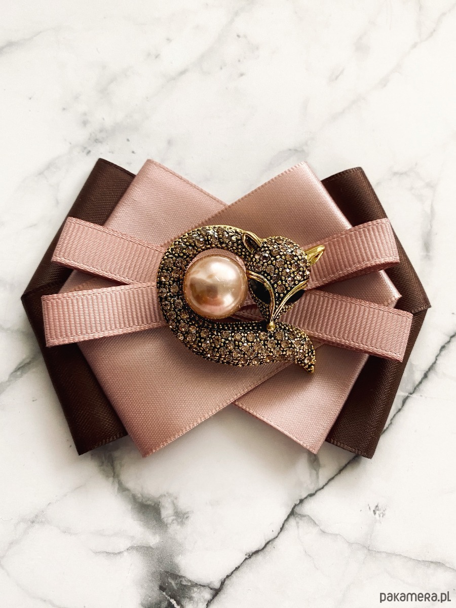 Broszka wykonana z wysokiej jakości taśm i dodatków.