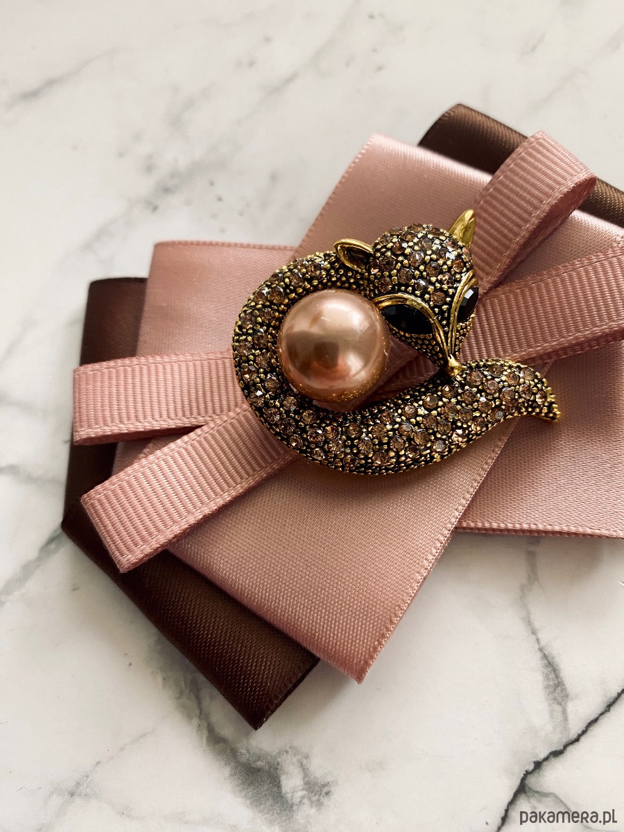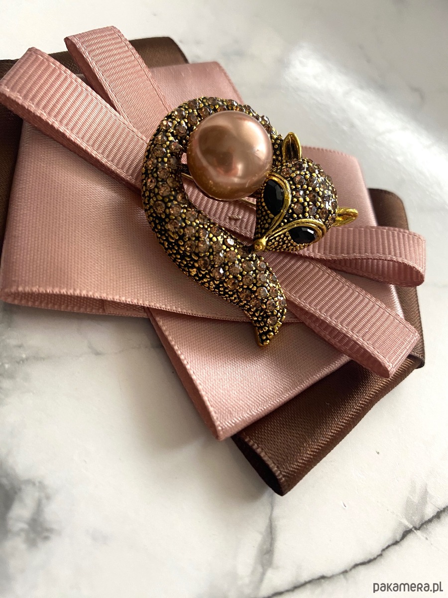 Brosza z cudnym Lisem z kryształków z dużą perłą New
