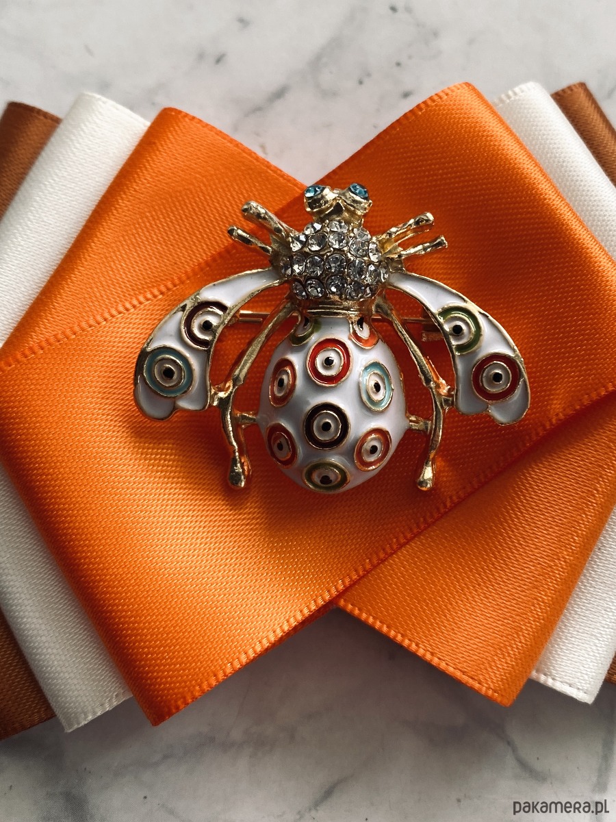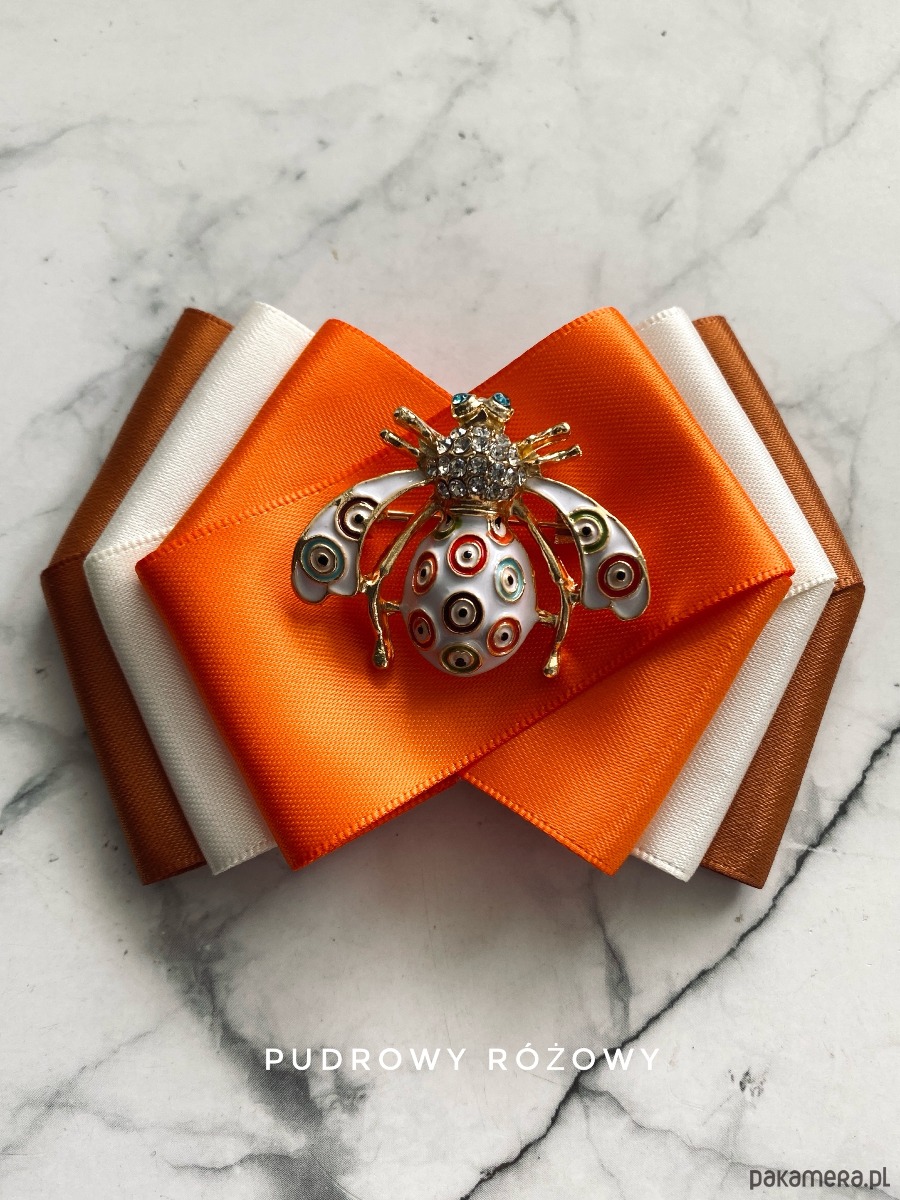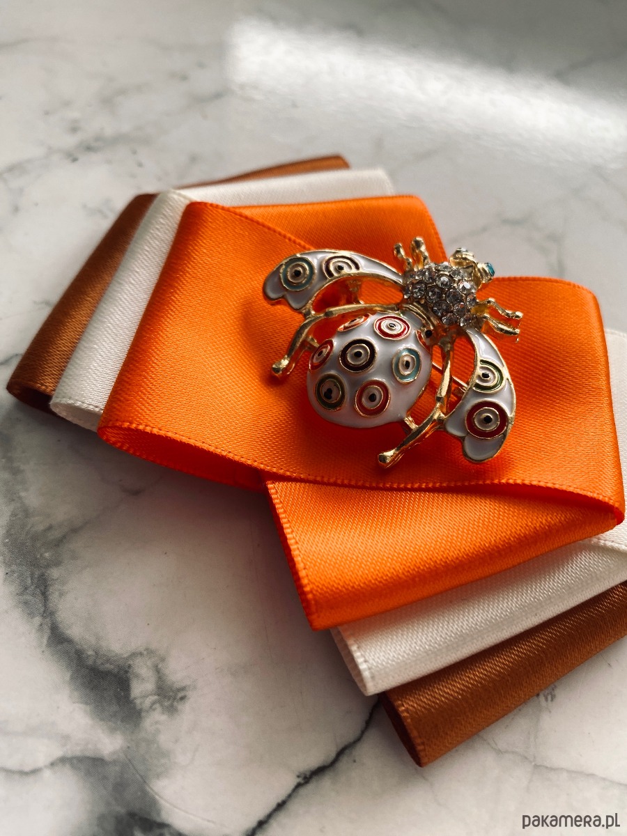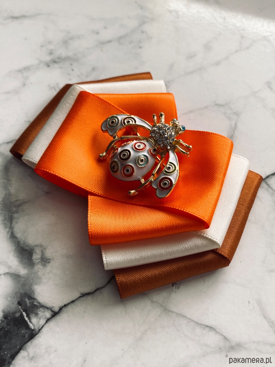 Broszka wykonana z wysokiej jakości taśm i dodatków.
