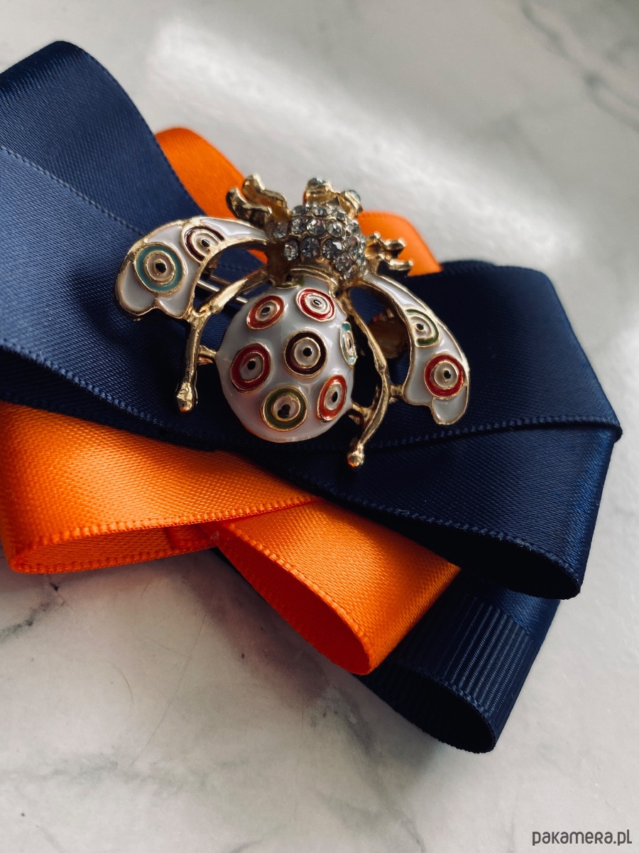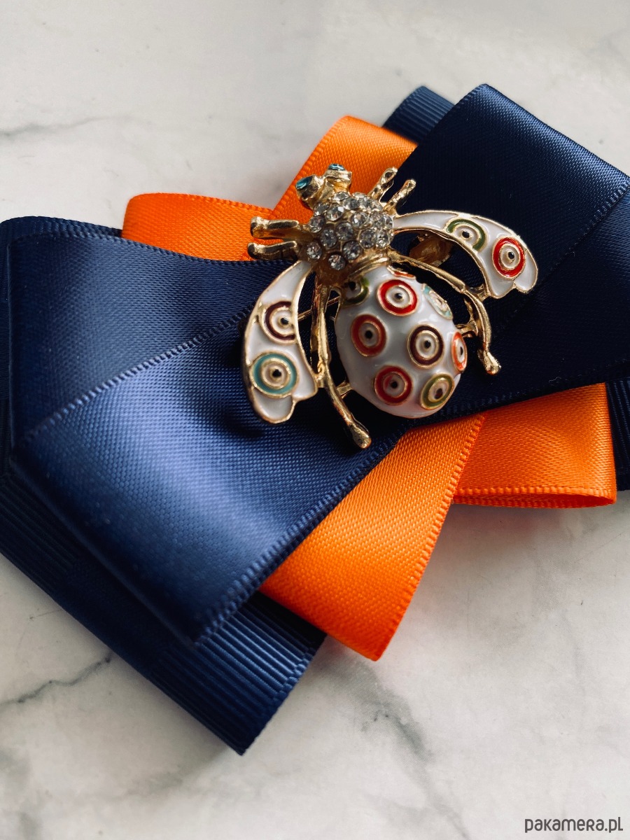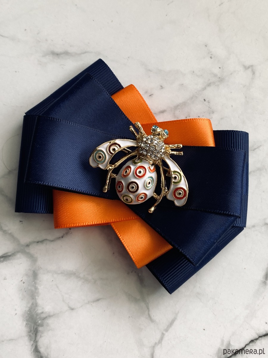 Broszka wykonana z wysokiej jakości taśm i dodatków.
