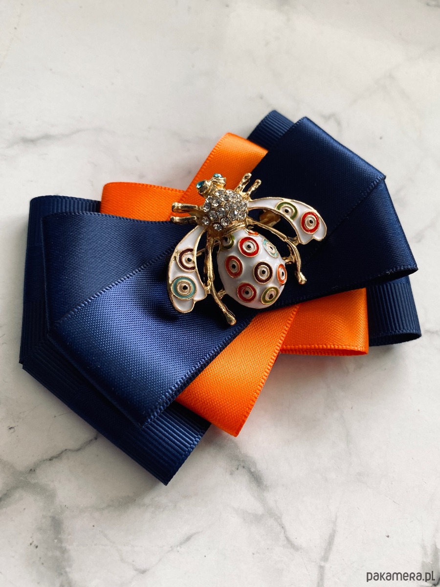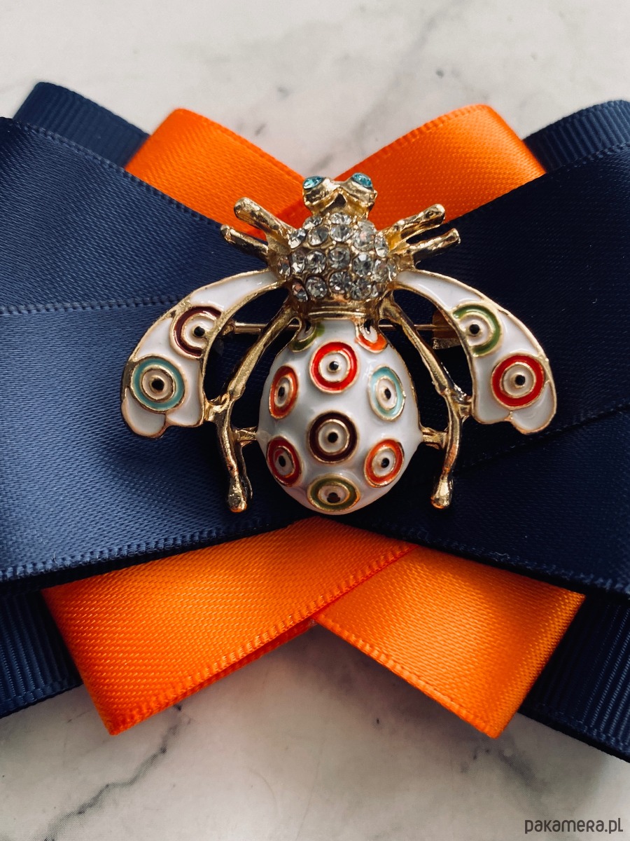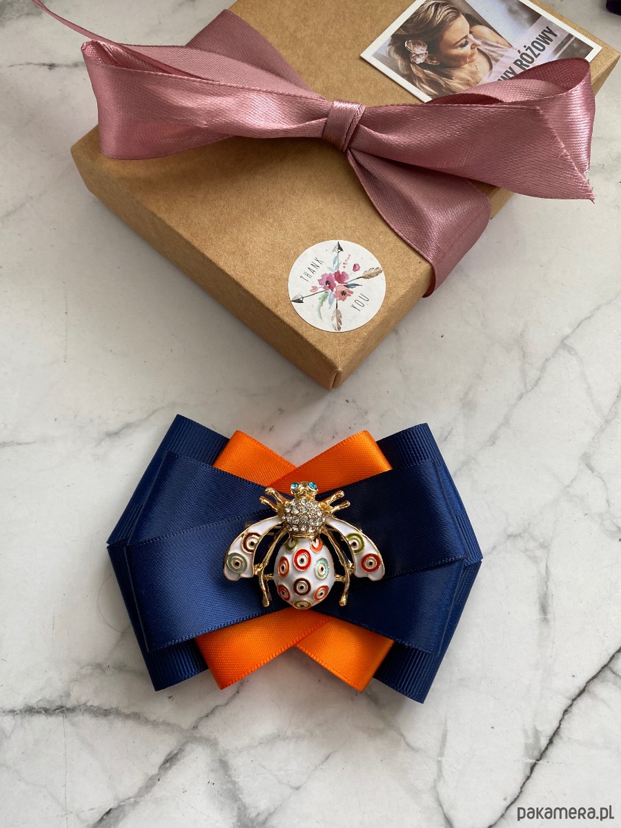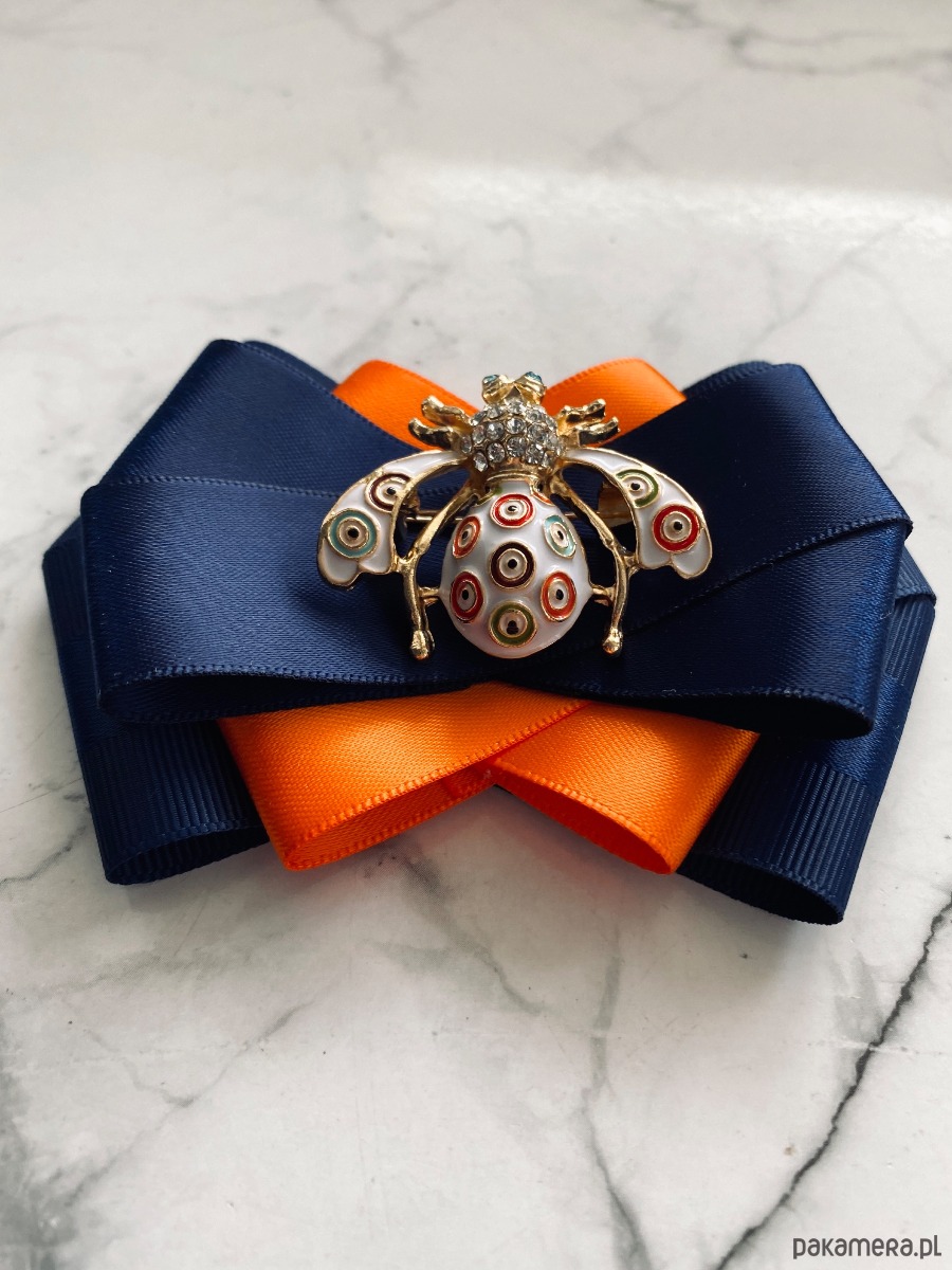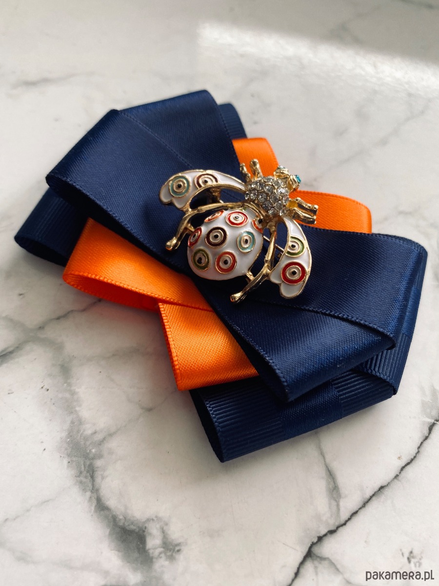 Broszka wykonana z wysokiej jakości taśm i dodatków.