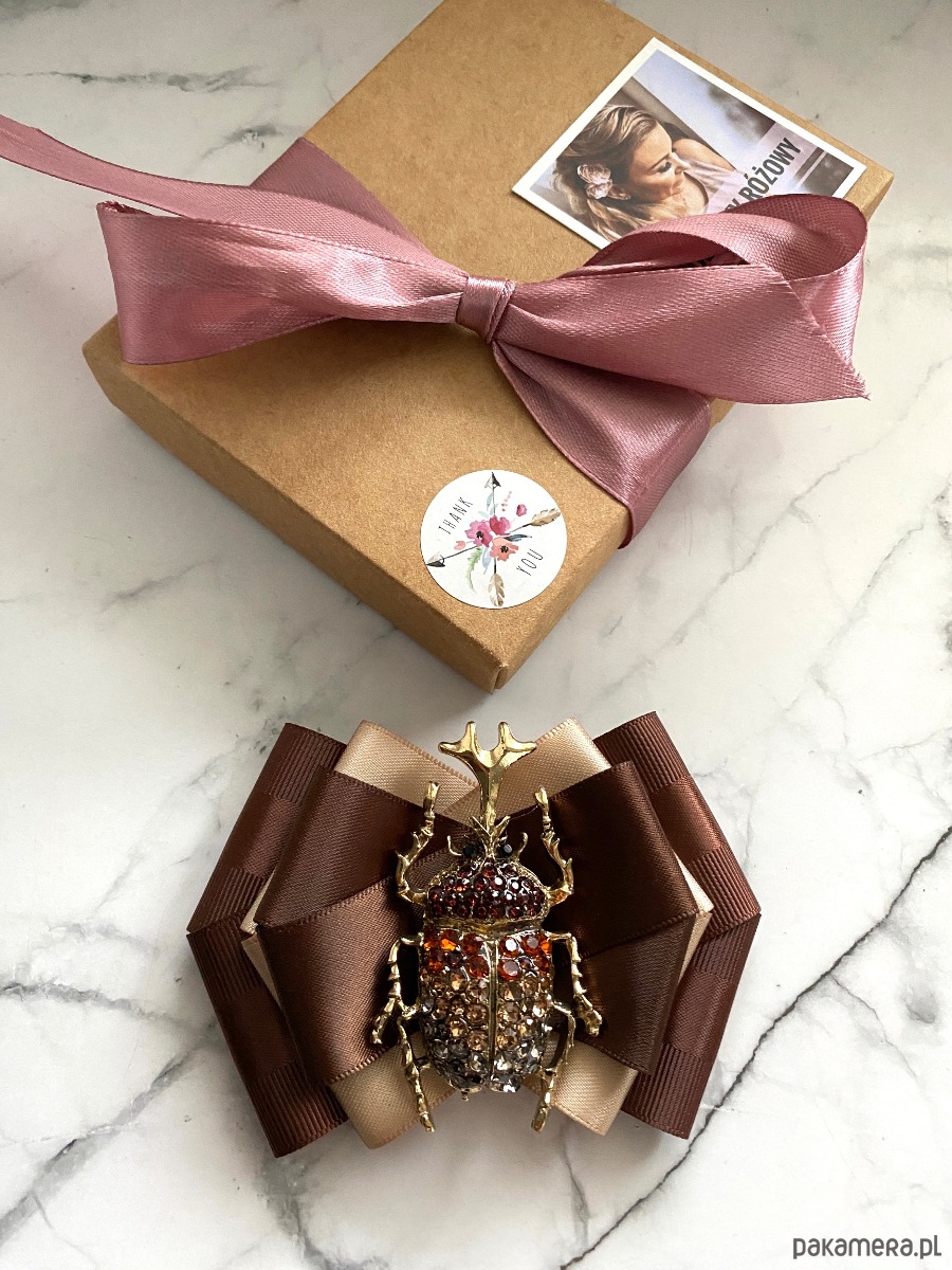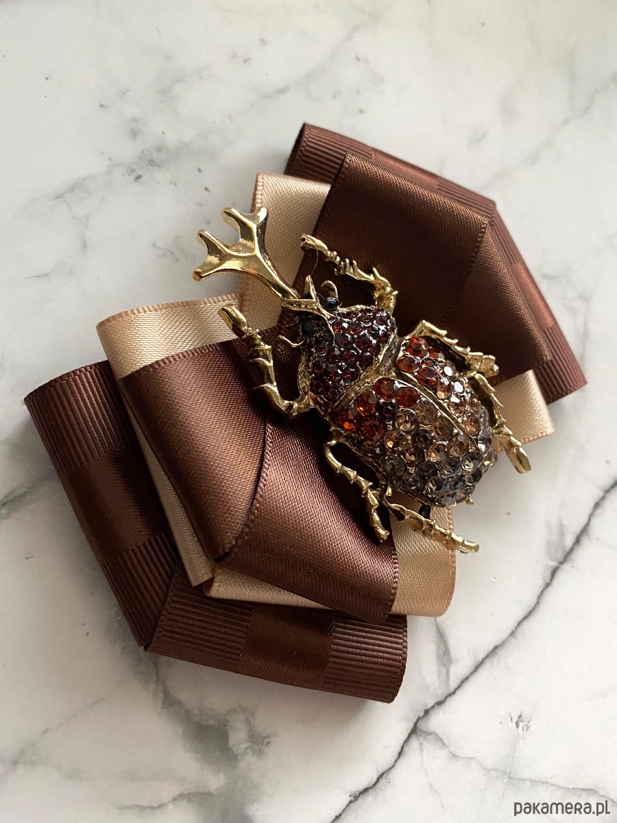 Broszka wykonana z wysokiej jakości taśm i dodatków.