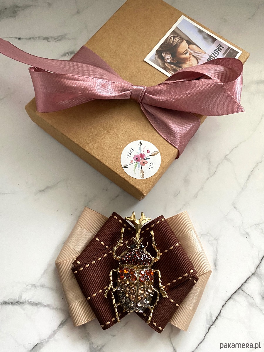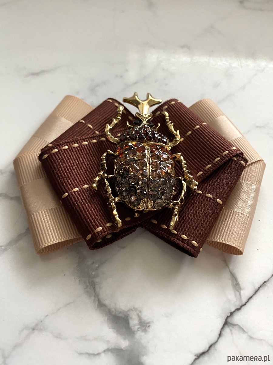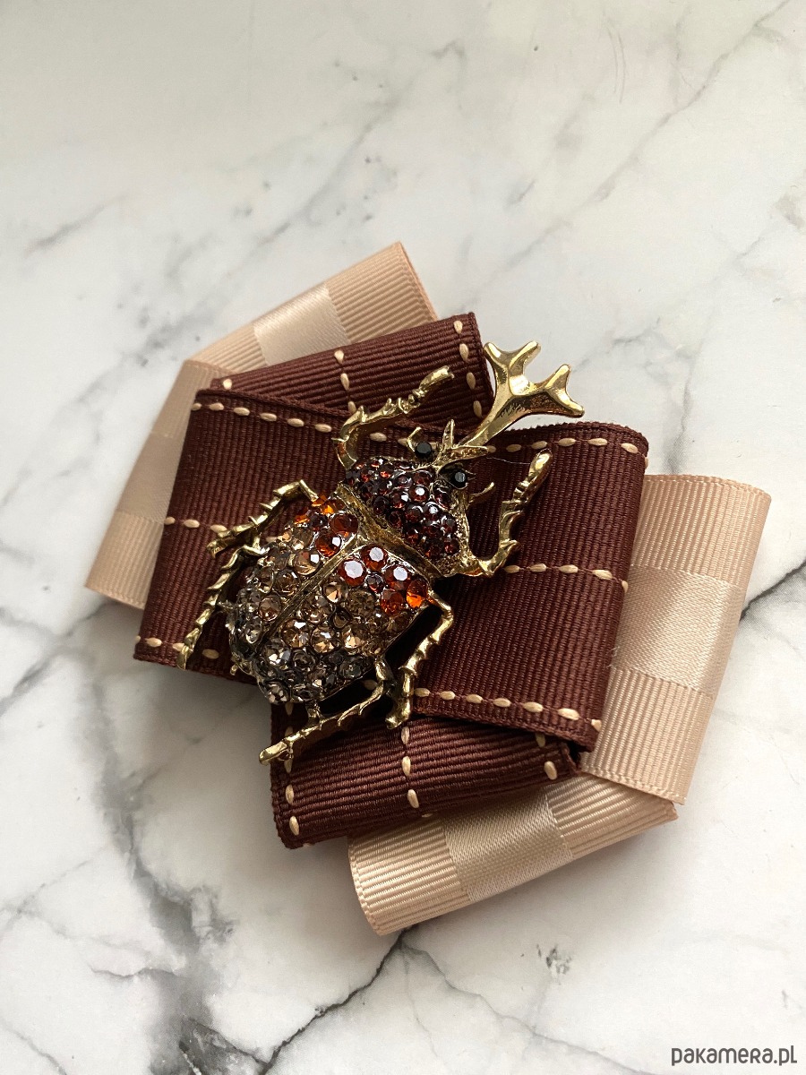 Broszka wykonana z wysokiej jakości taśm i dodatków.