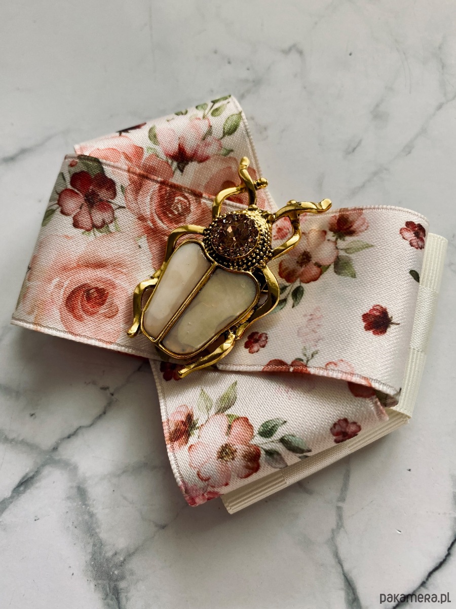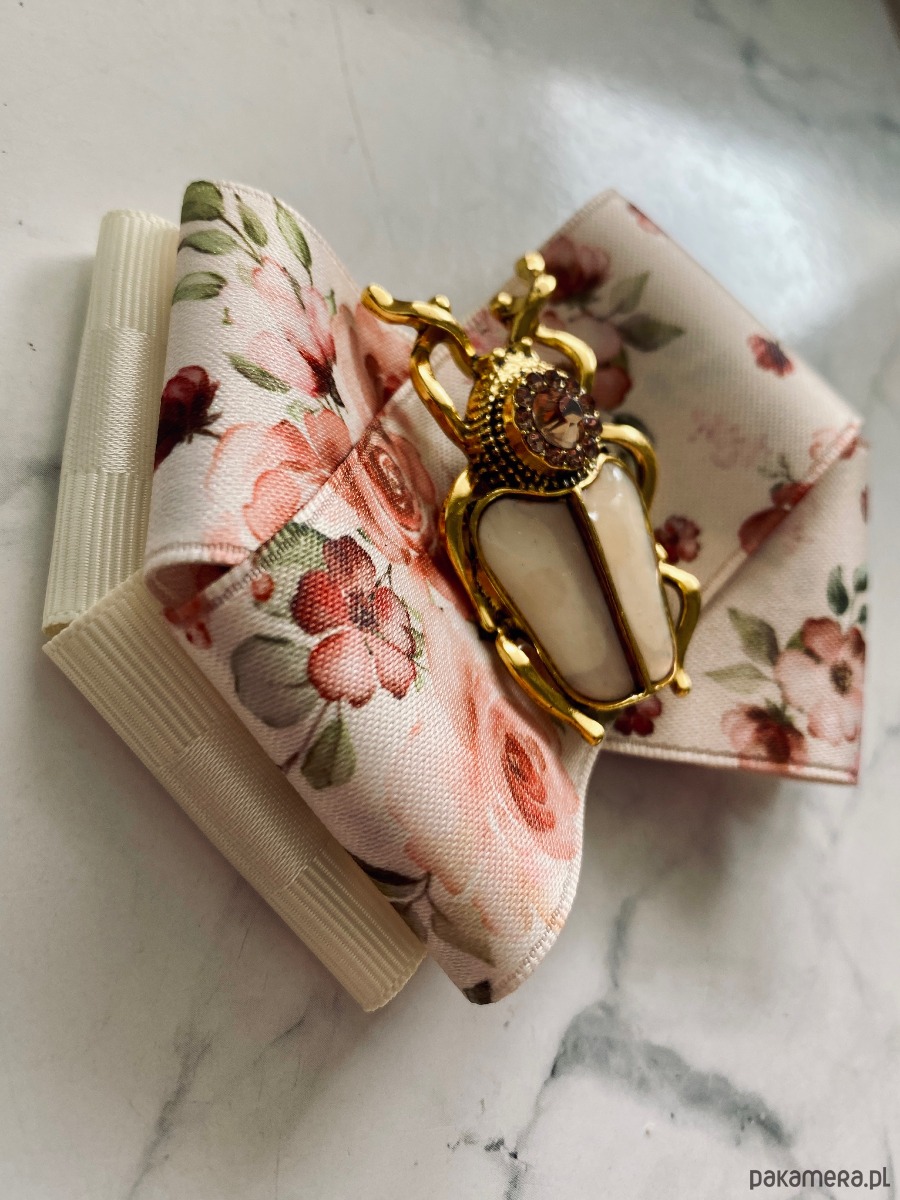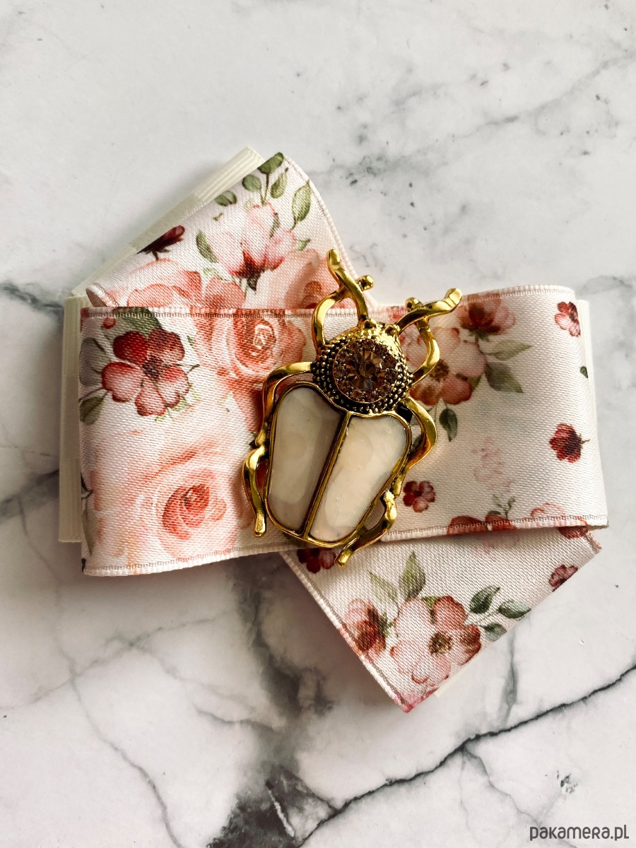 Broszka wykonana z wysokiej jakości taśm i dodatków.