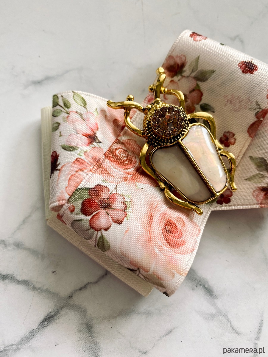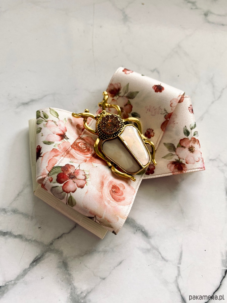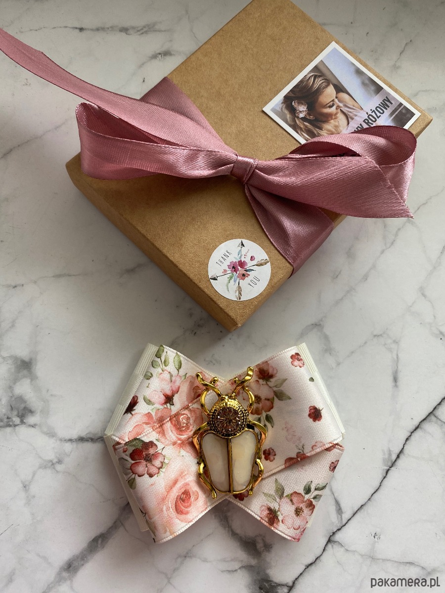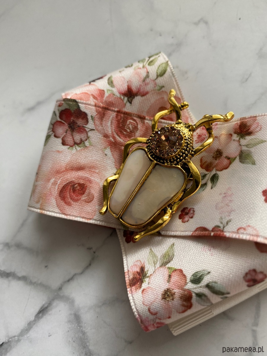Broszka wykonana z wysokiej jakości taśm i dodatków.