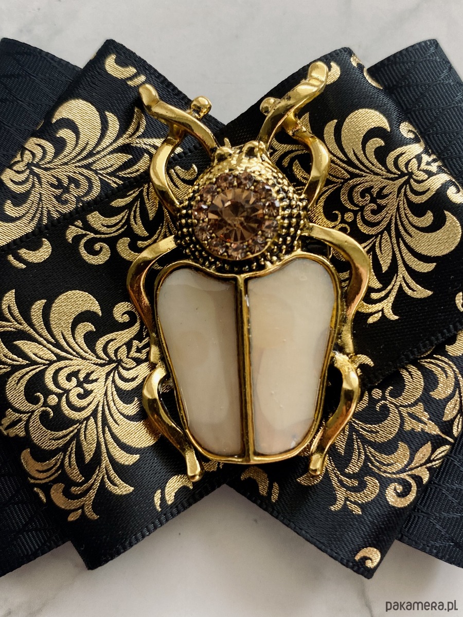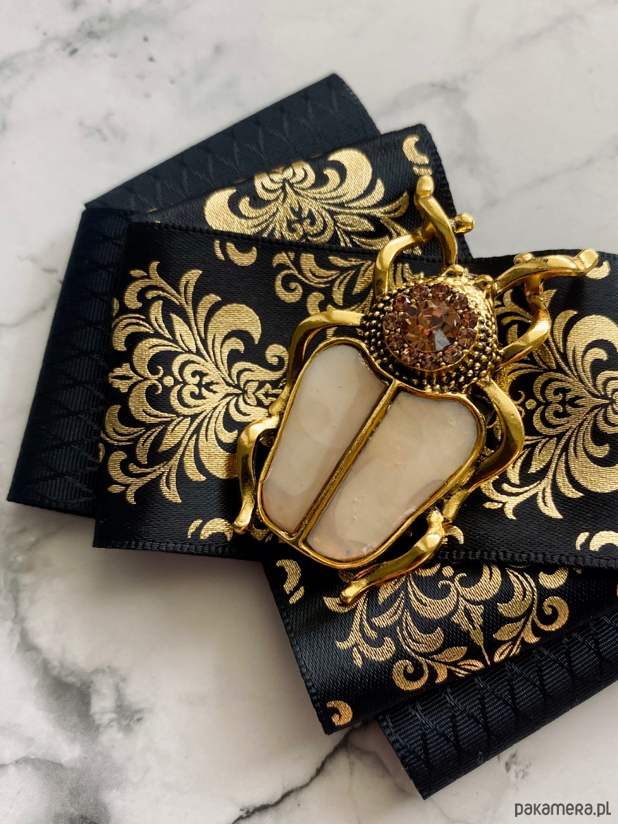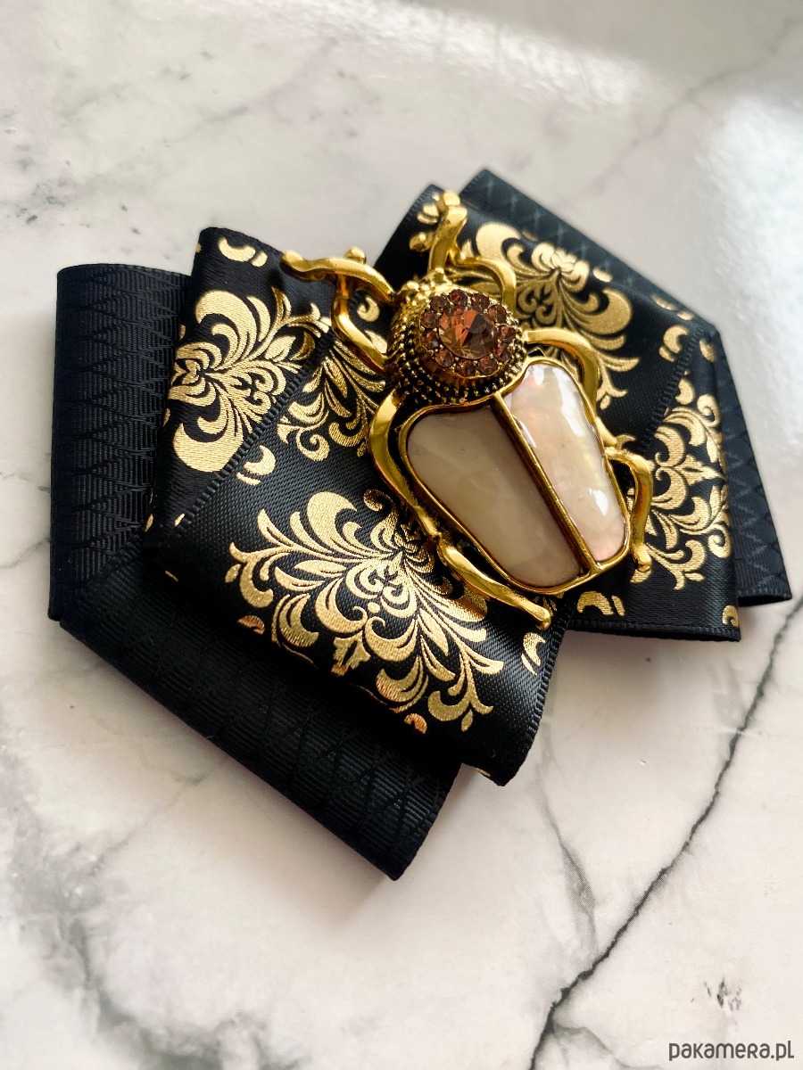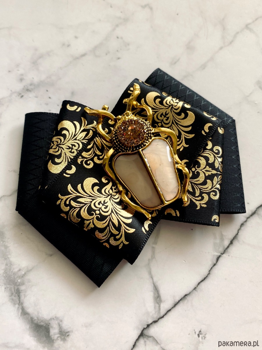 Broszka wykonana z wysokiej jakości taśm i dodatków.