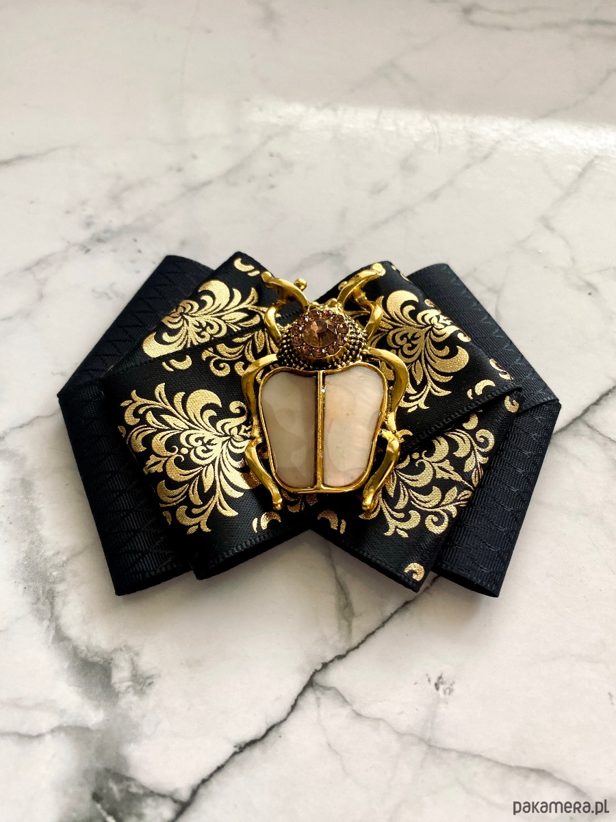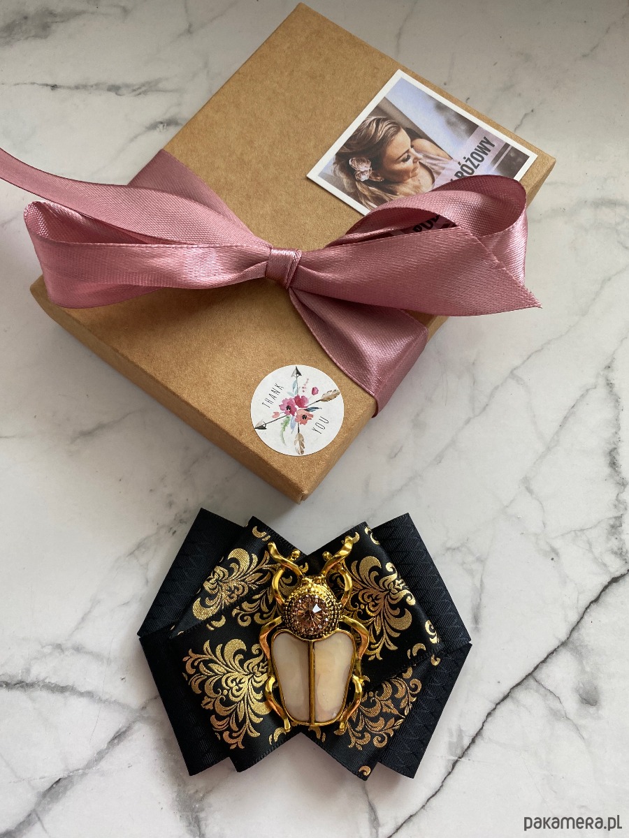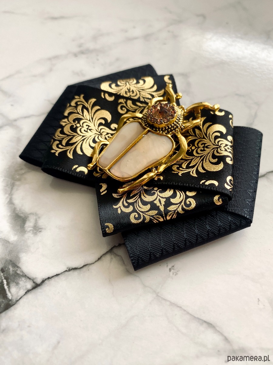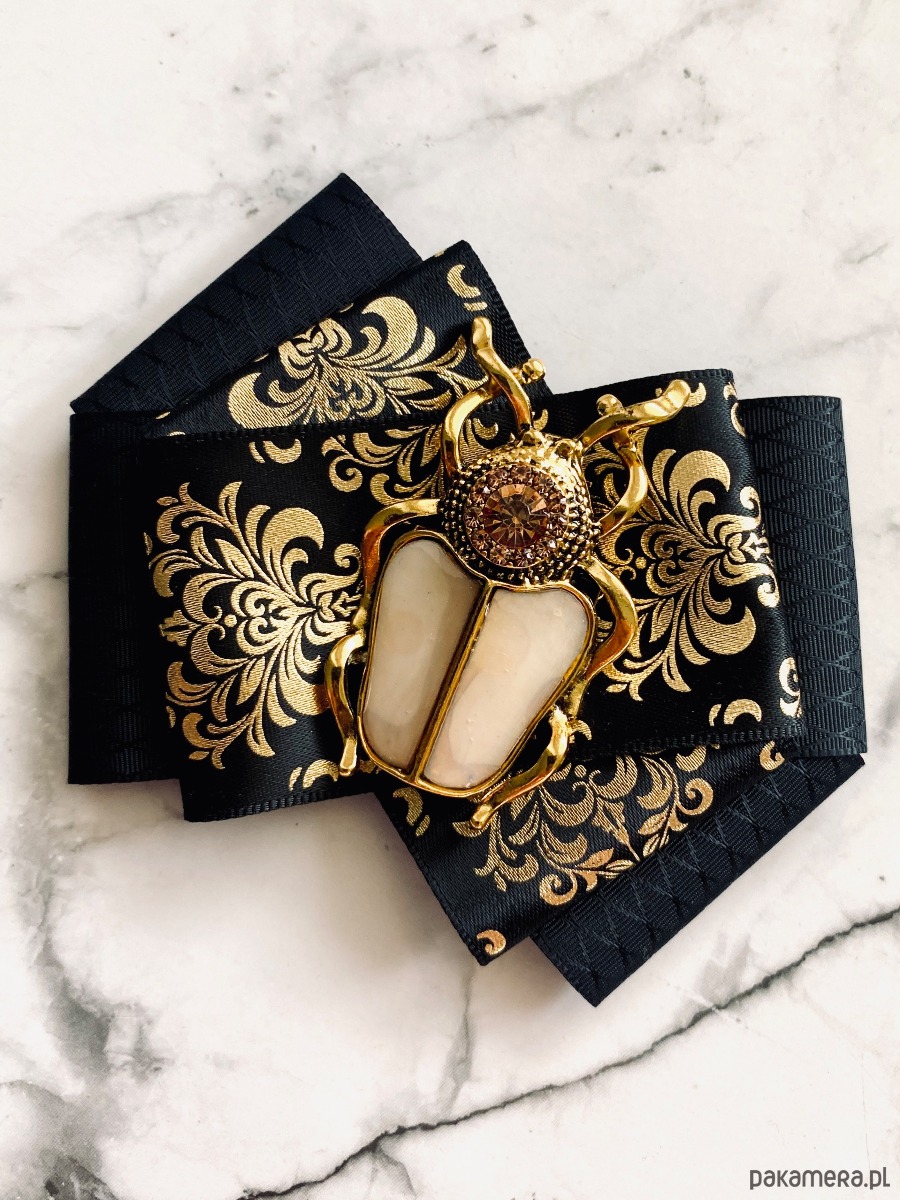 Broszka wykonana z wysokiej jakości taśm i dodatków.