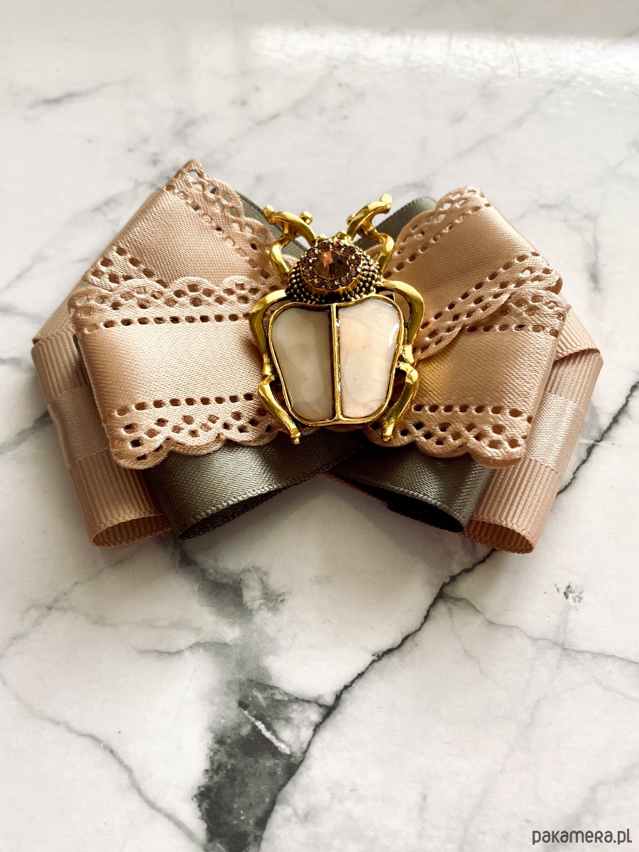 Broszka wykonana z wysokiej jakości taśm i dodatków.