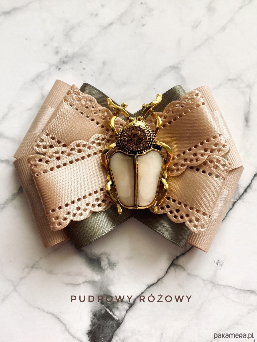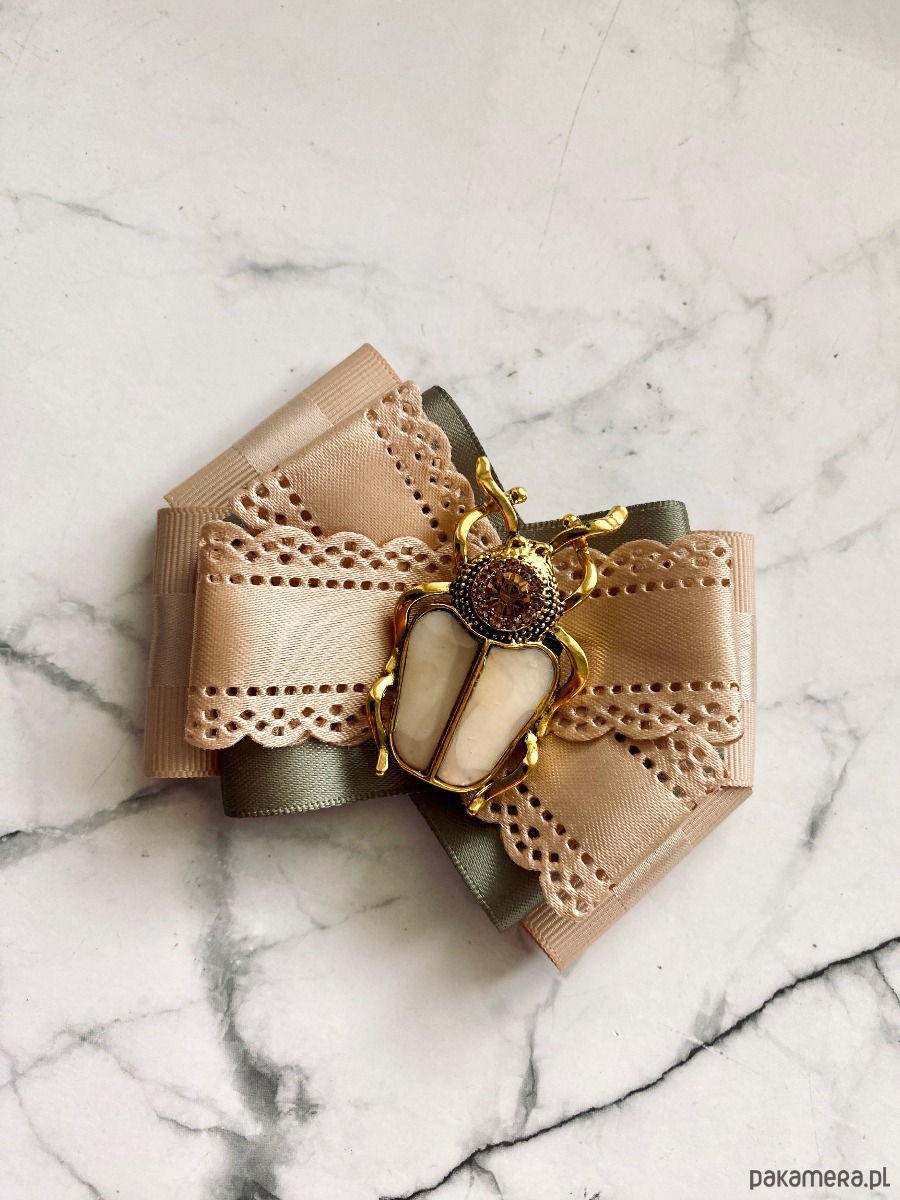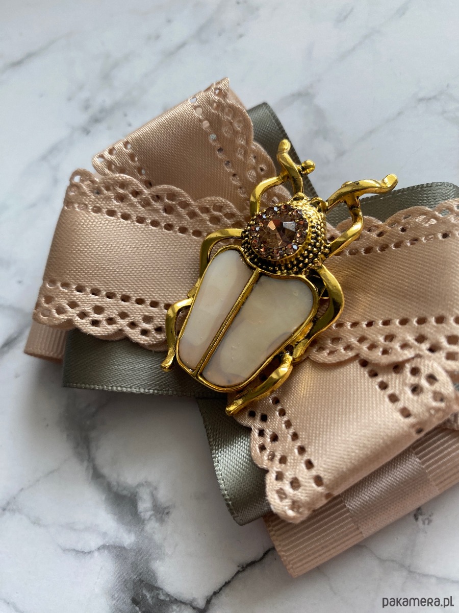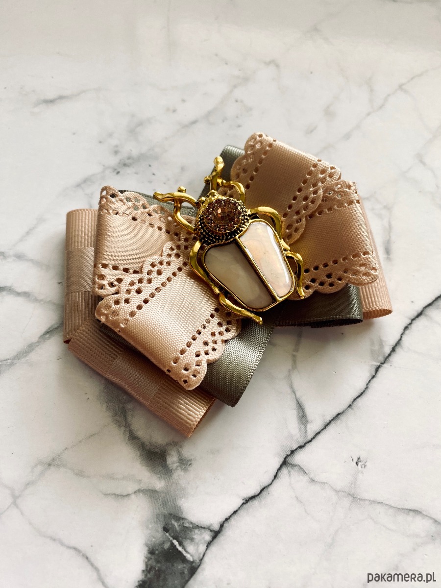 Broszka wykonana z wysokiej jakości taśm i dodatków.