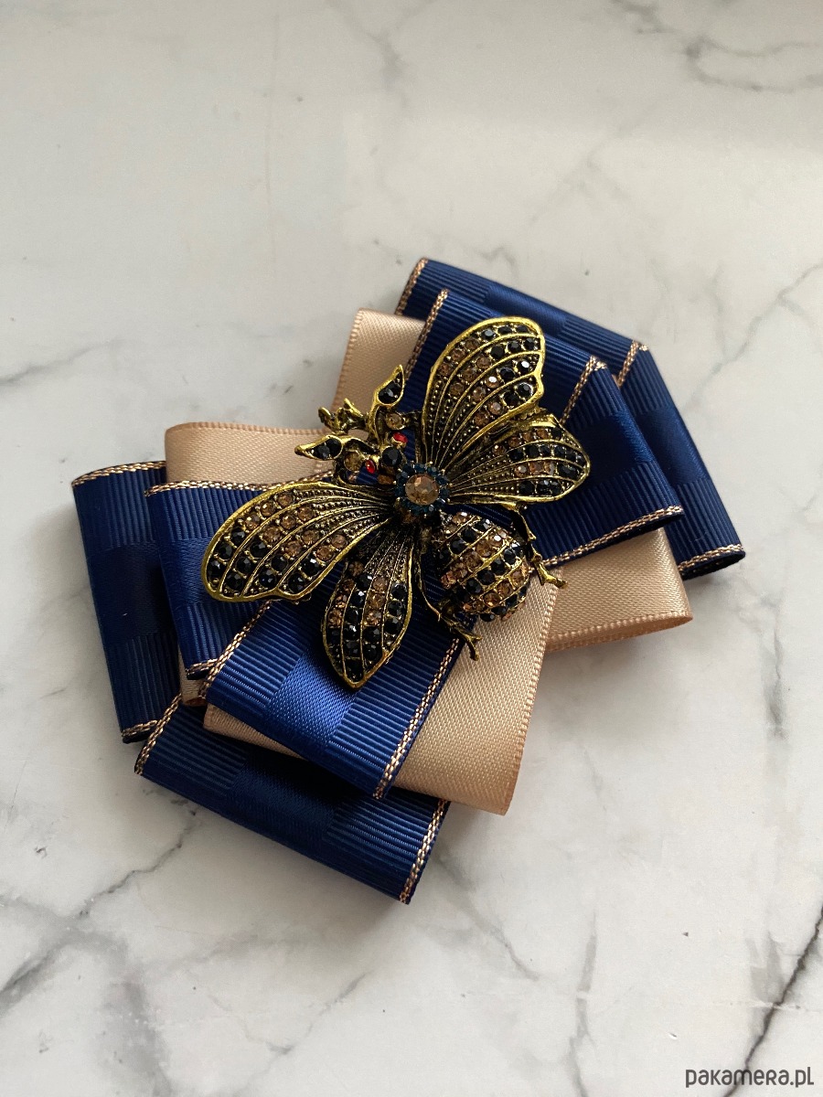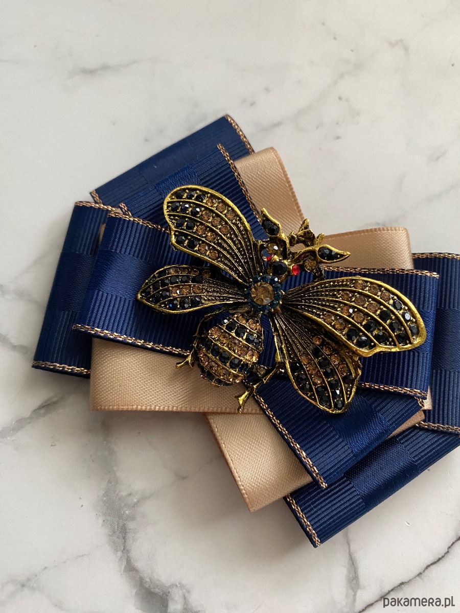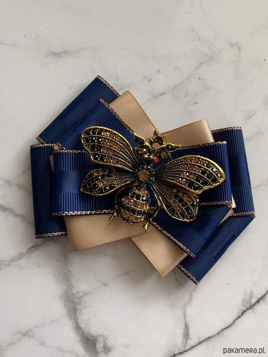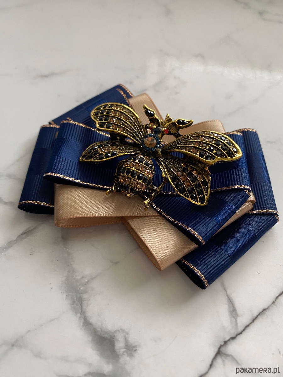 Broszka wykonana z wysokiej jakości taśm i dodatków.