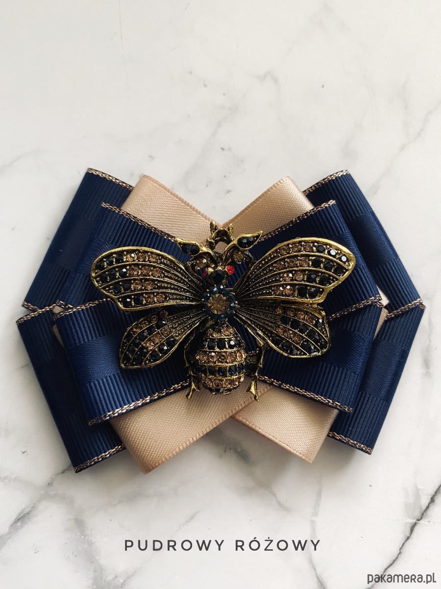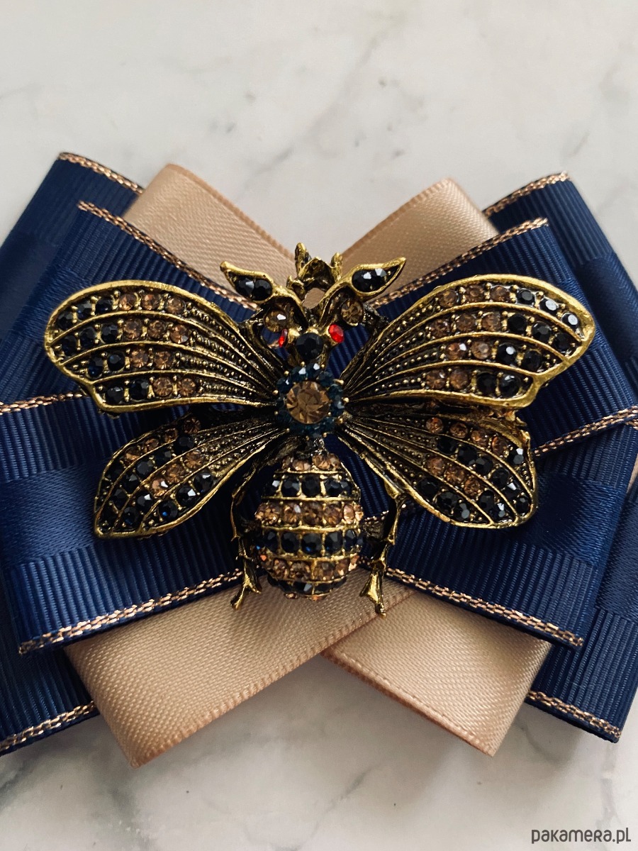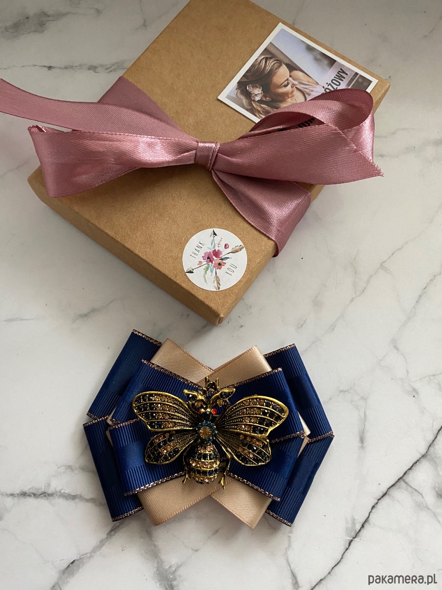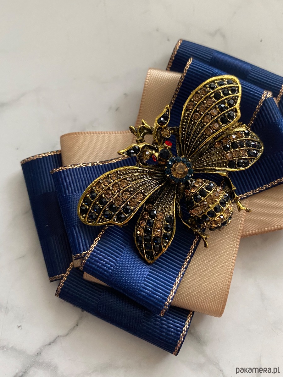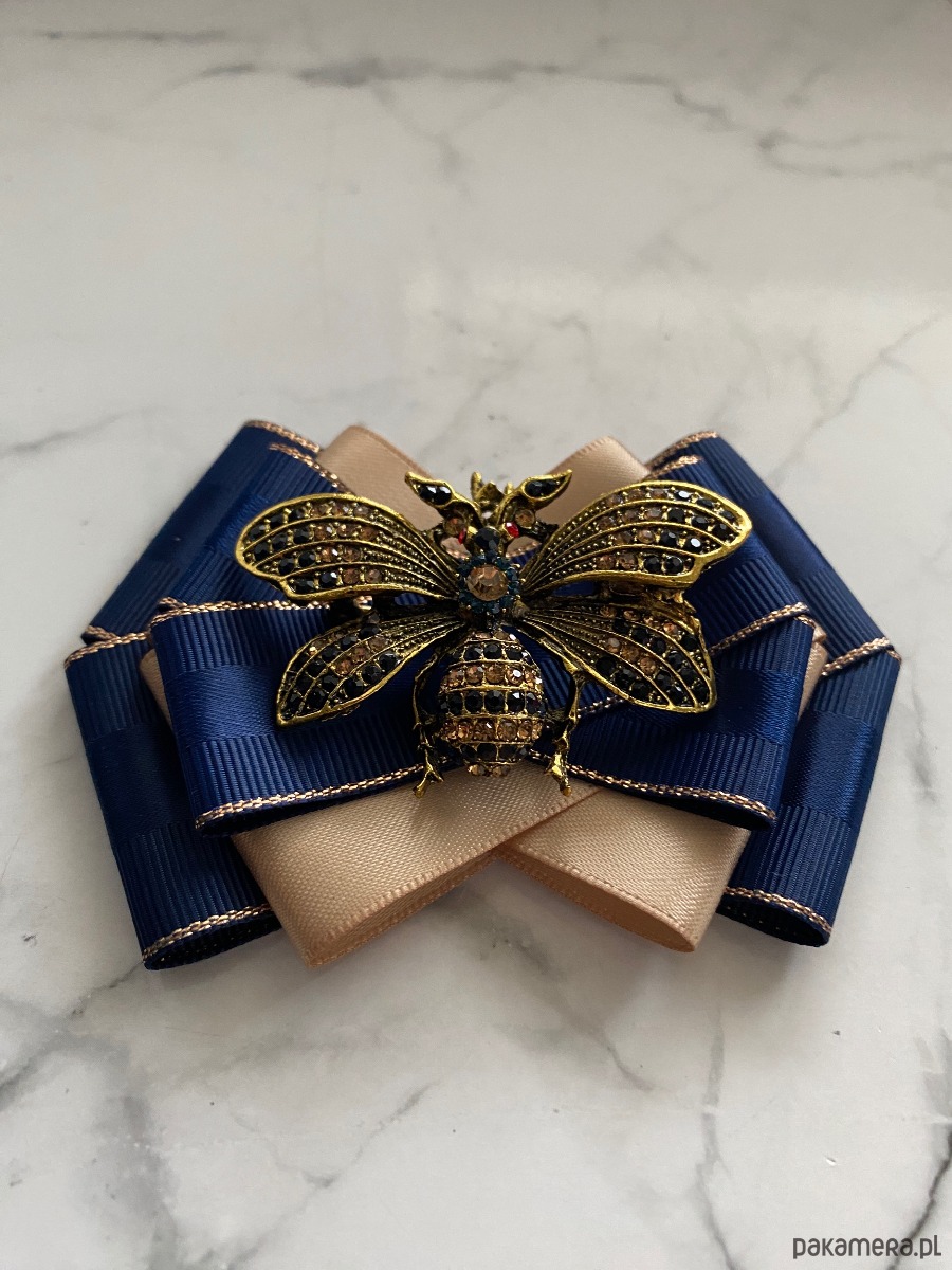 Broszka wykonana z wysokiej jakości taśm i dodatków.