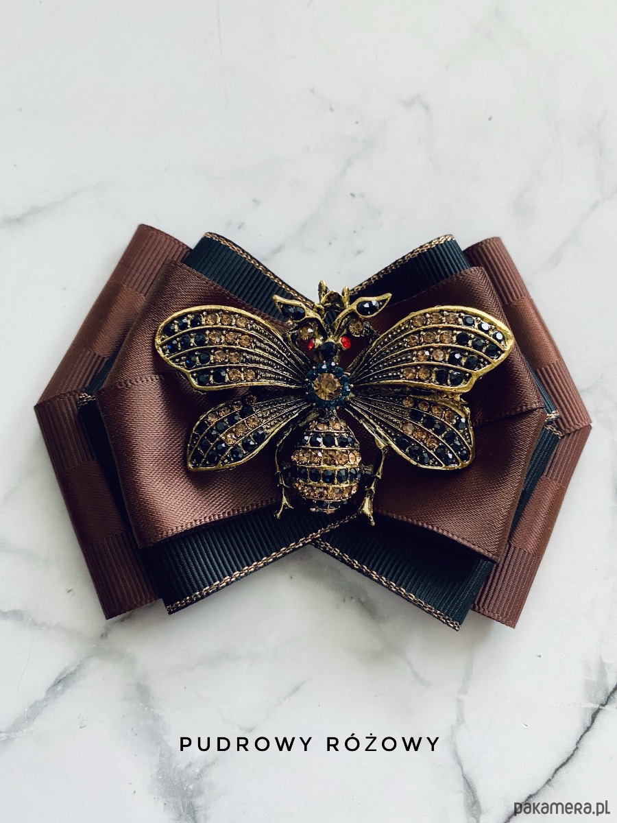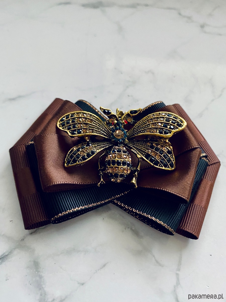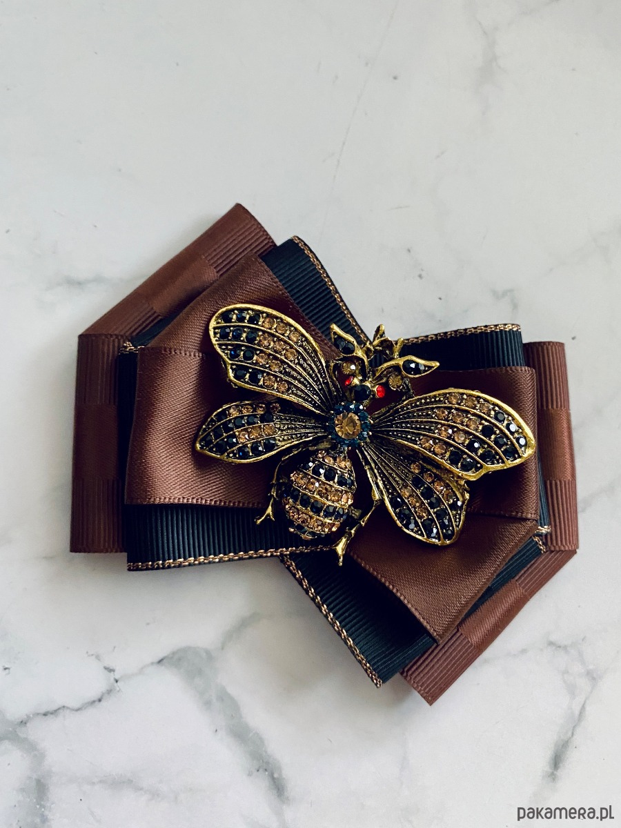 Broszka wykonana z wysokiej jakości taśm i dodatków.