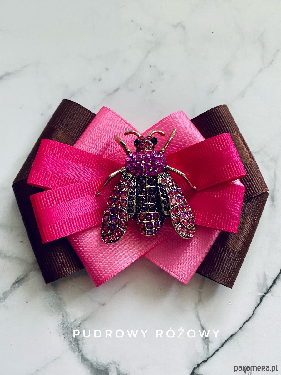 Piękna okazala ozdoba na środku, Owad wykonany z drobnych kryształków w kolorach różu.