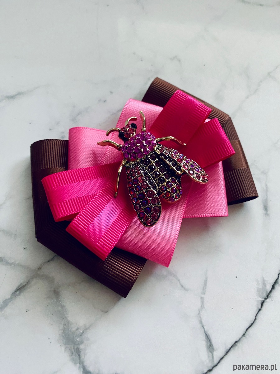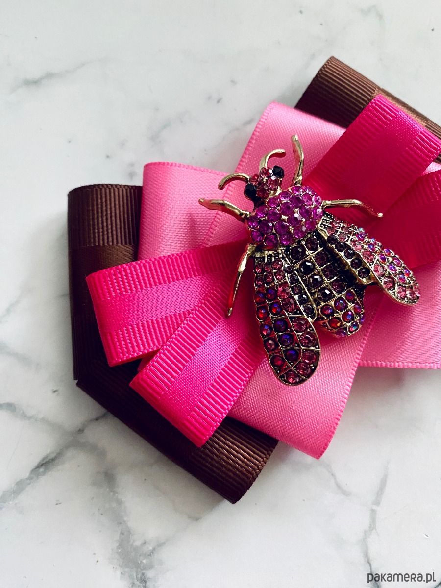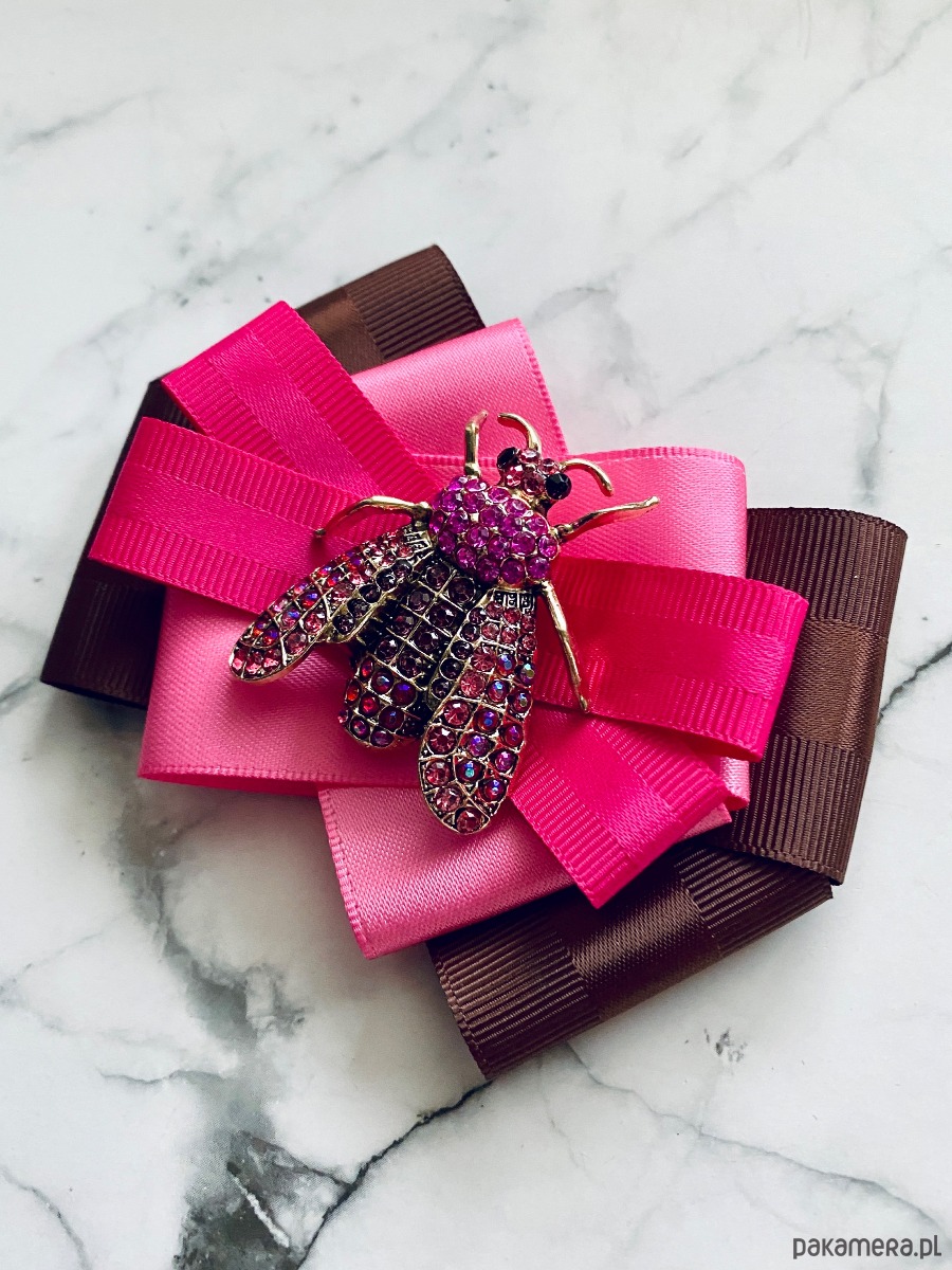 Brosza z cudnym Owadem z kryształków pink New Jesień