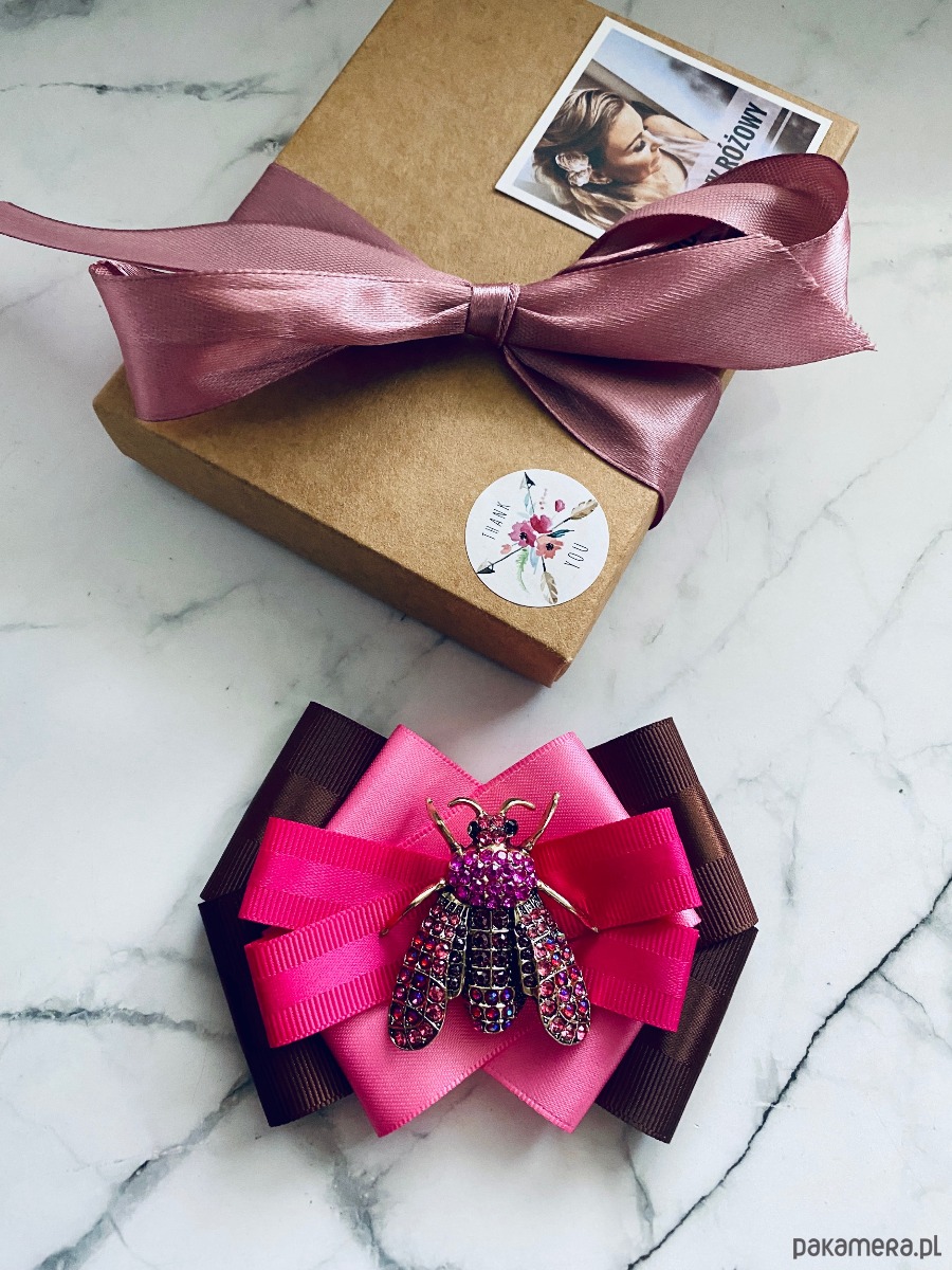 Broszka wykonana z wysokiej jakości taśm i dodatków.