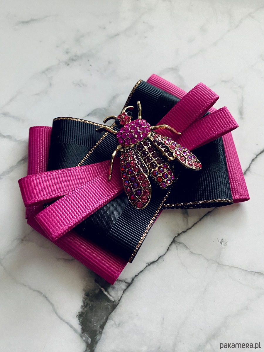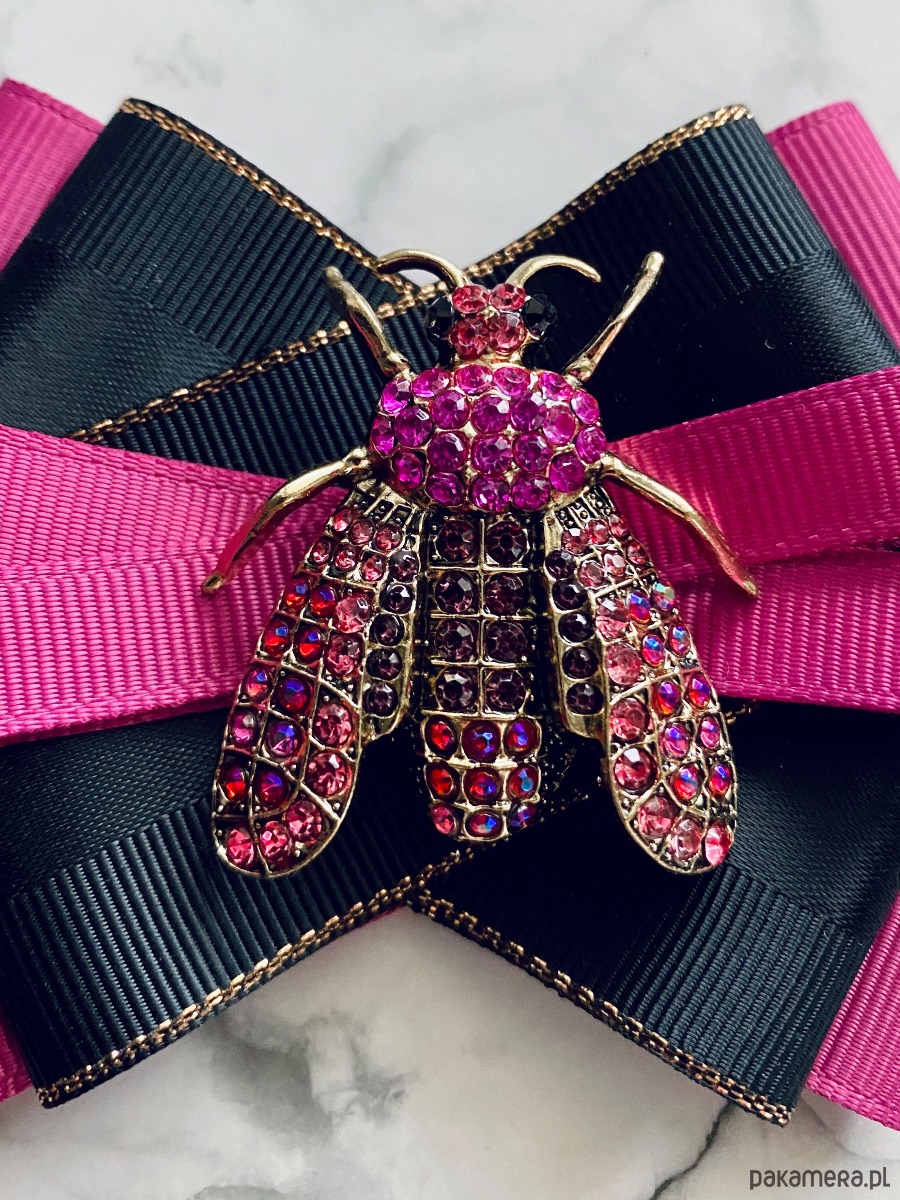 Brosza z cudnym Owadem z kryształków pink New Jesień